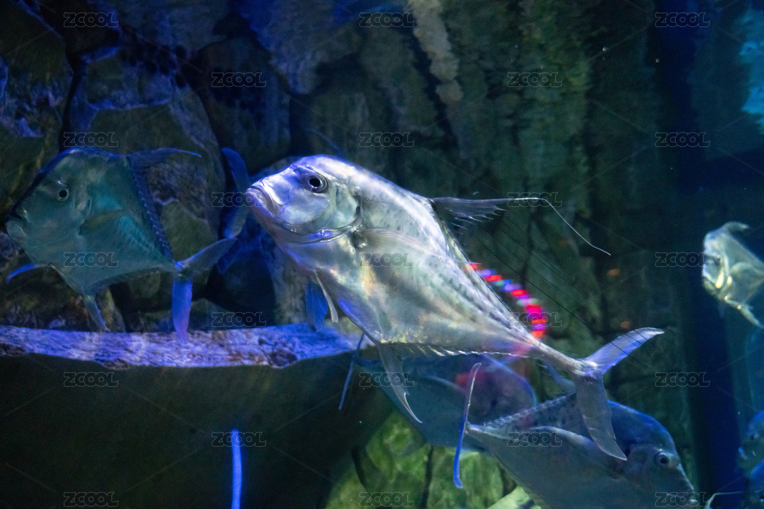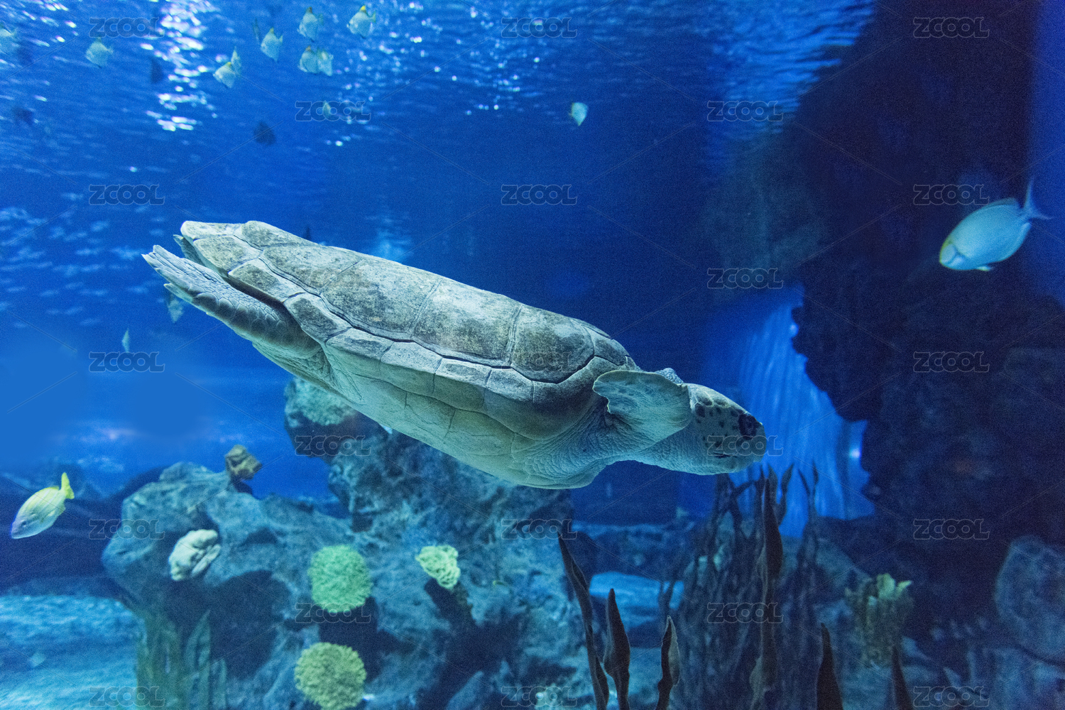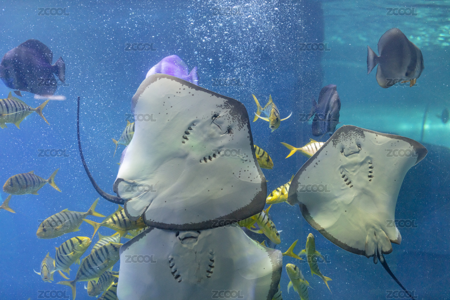 深蓝色的大海中,一条鳐鱼缓缓游过