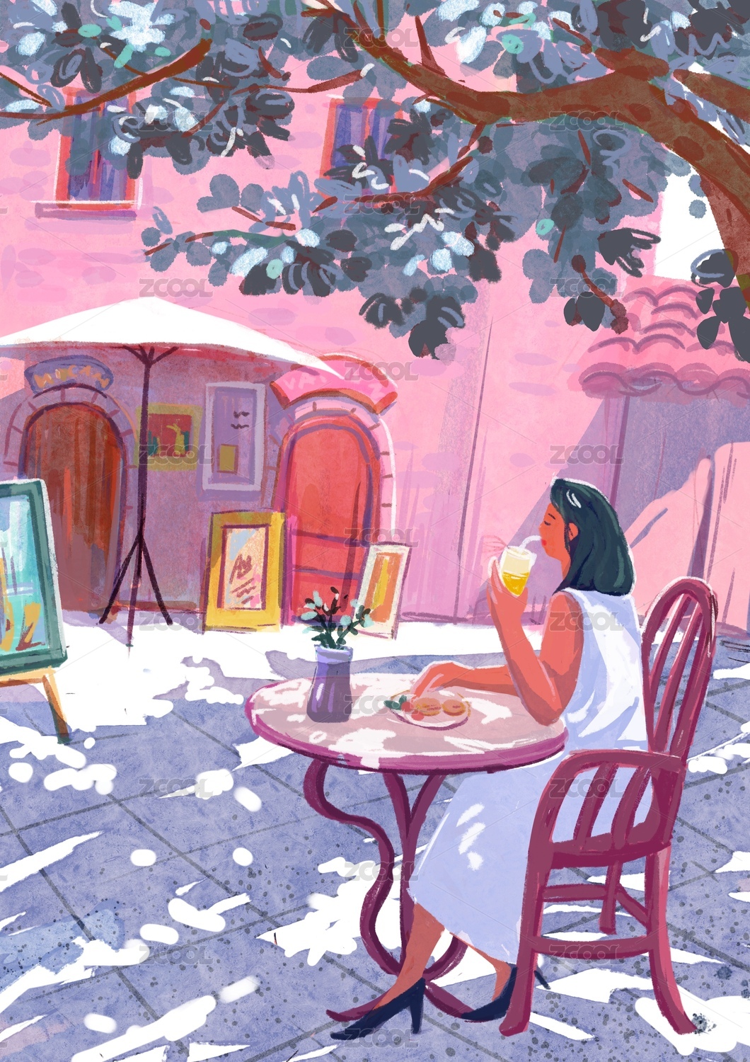 HEYYTDK2021,手绘,咖啡,咖啡厅,休闲,插画,卡通
