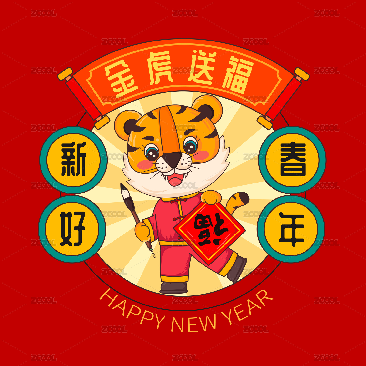 节日,庆祝,新年,虎,老虎,卡通,虎年,春节,生肖,矢量