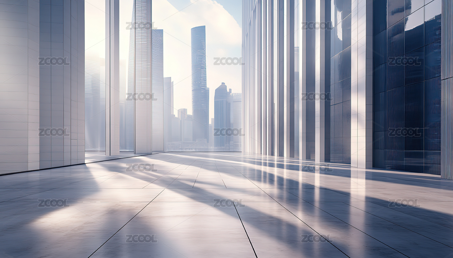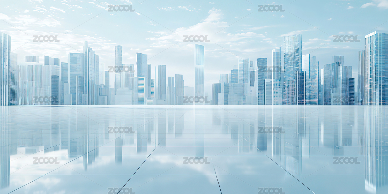 抽象插画风商业写字楼,城市天际线玻璃幕墙