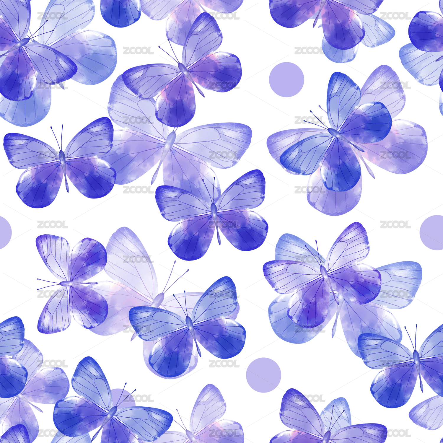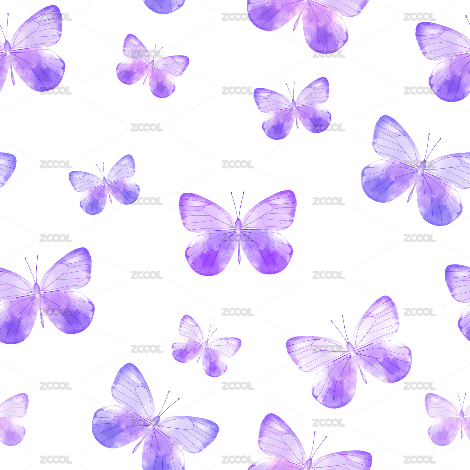 手绘无缝水彩蝴蝶