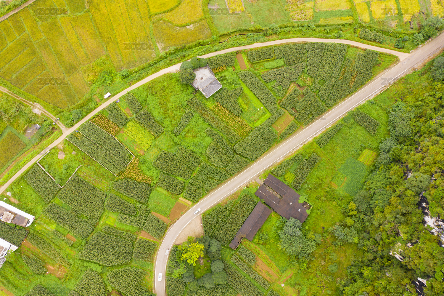 航拍,公路,村庄,游道,农村,作物,农业,房屋,路