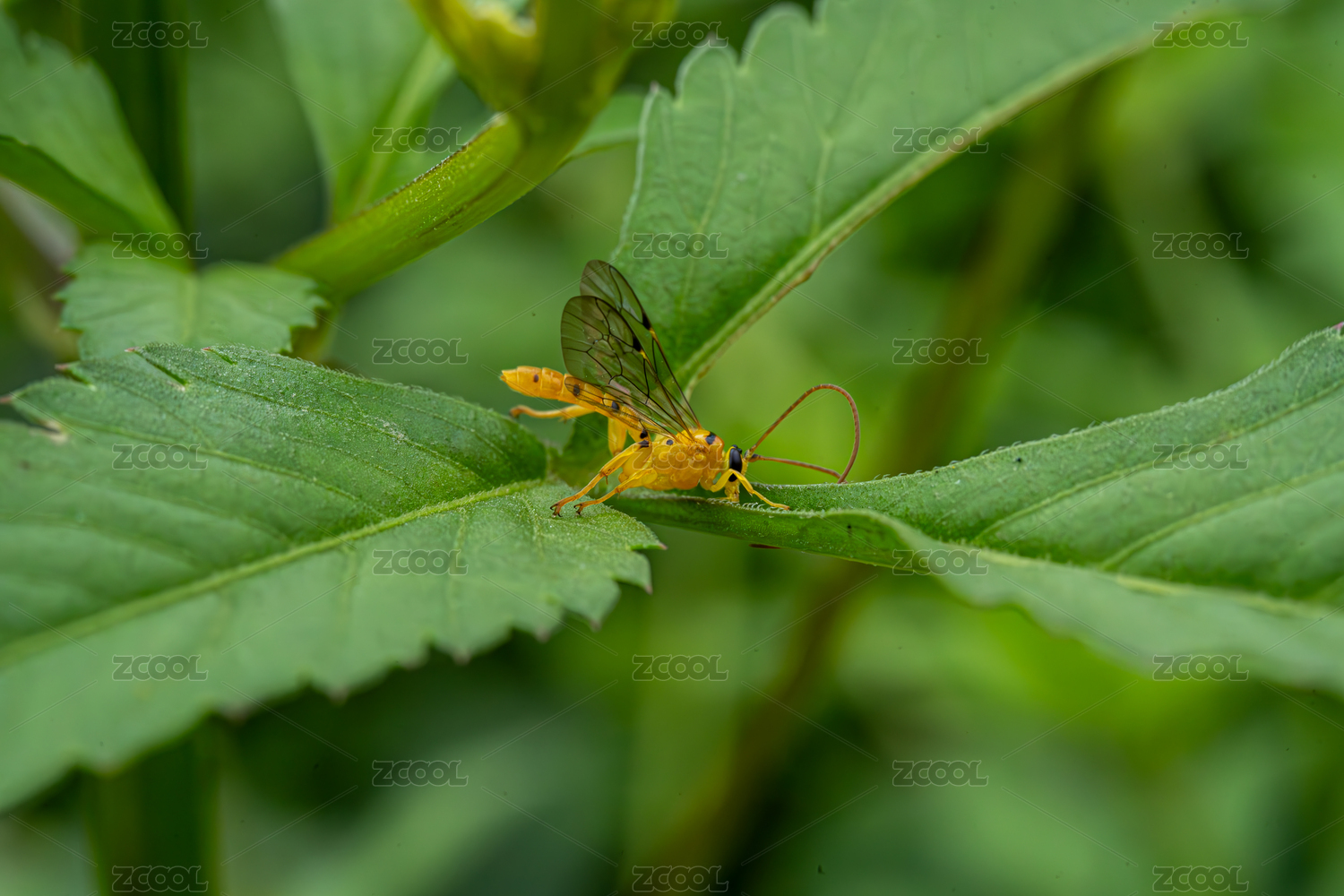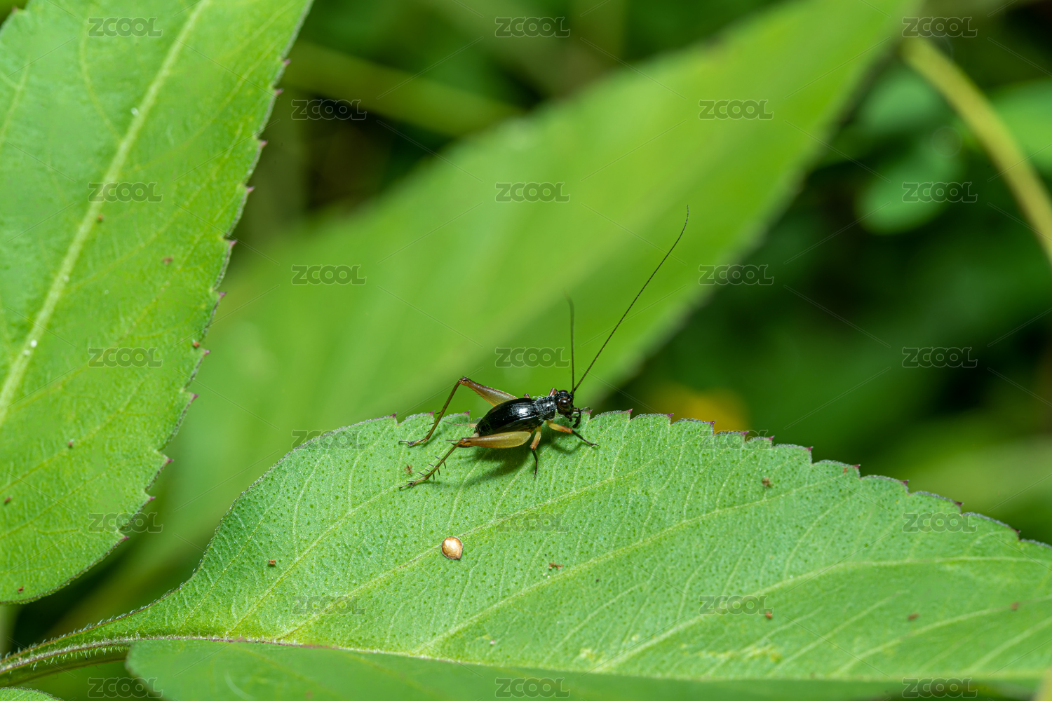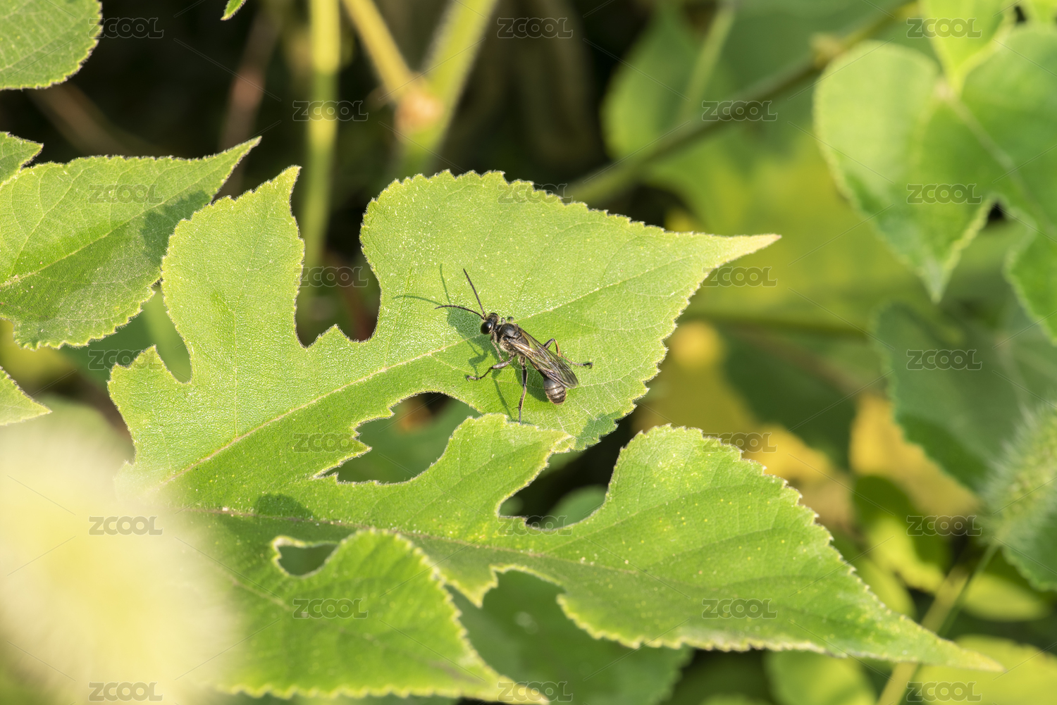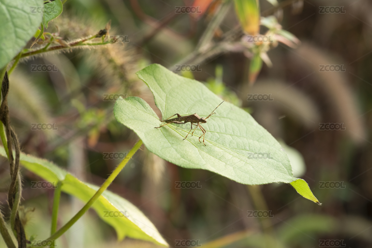 清晨停栖在绿色树叶上的稻棘缘蝽