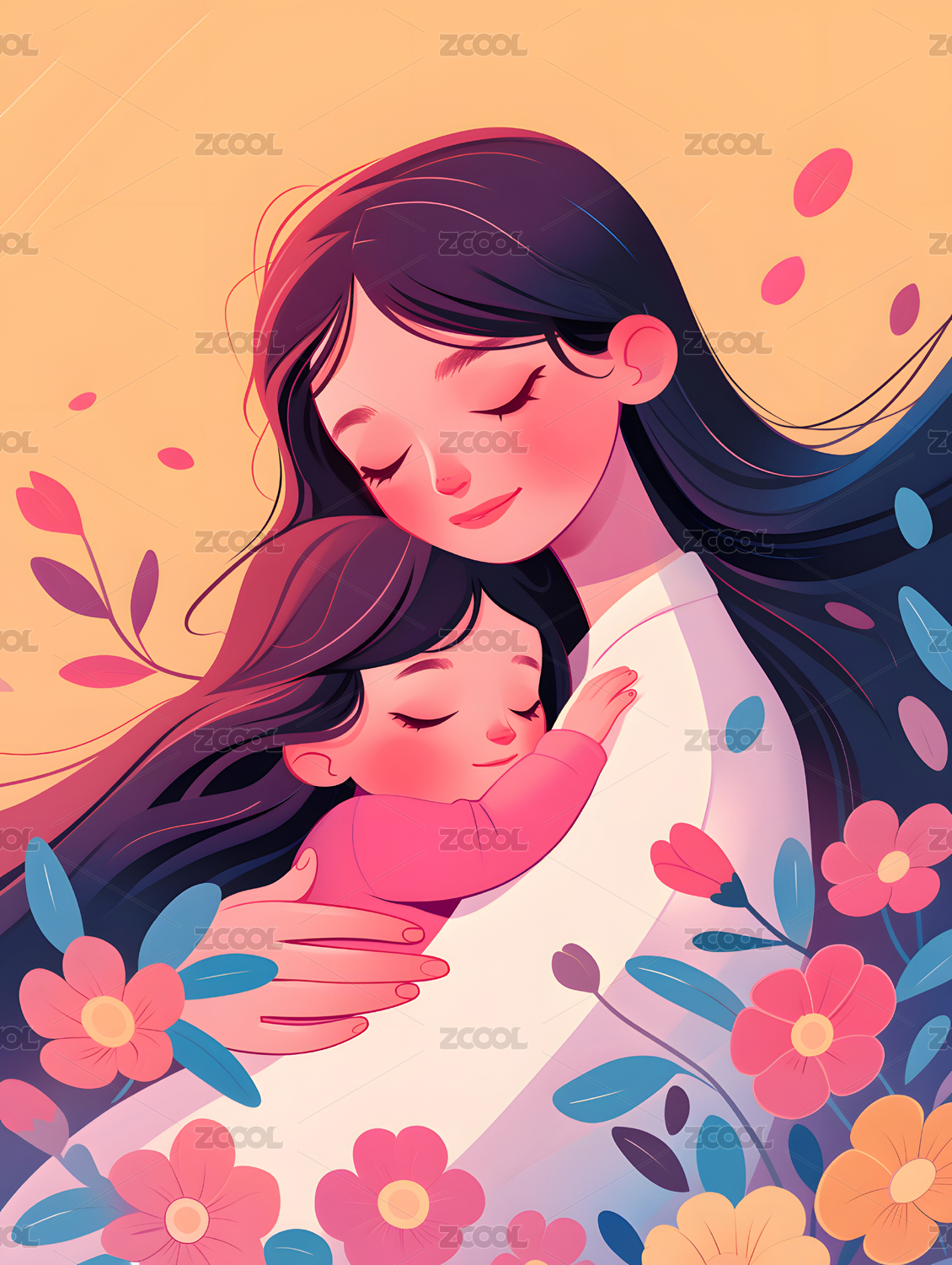 一个小女孩依偎在妈妈的怀抱中的温馨画面