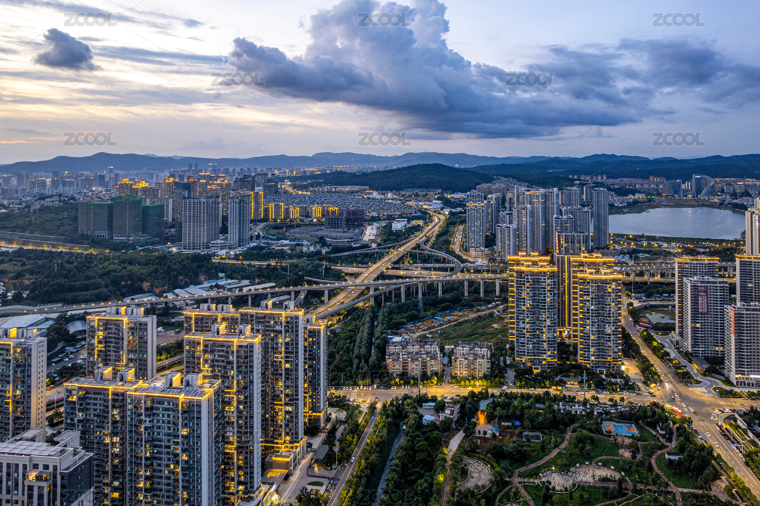 深圳光明新区CBD高新科技区蓝调高空航拍