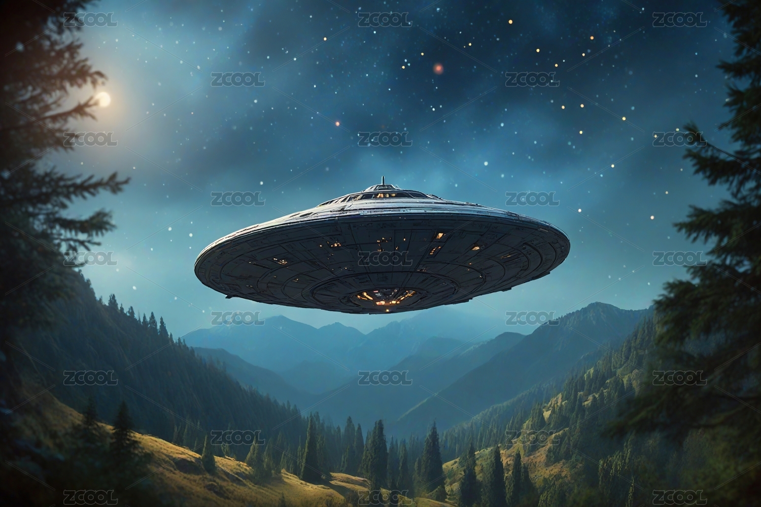 外星飞船在山间主题