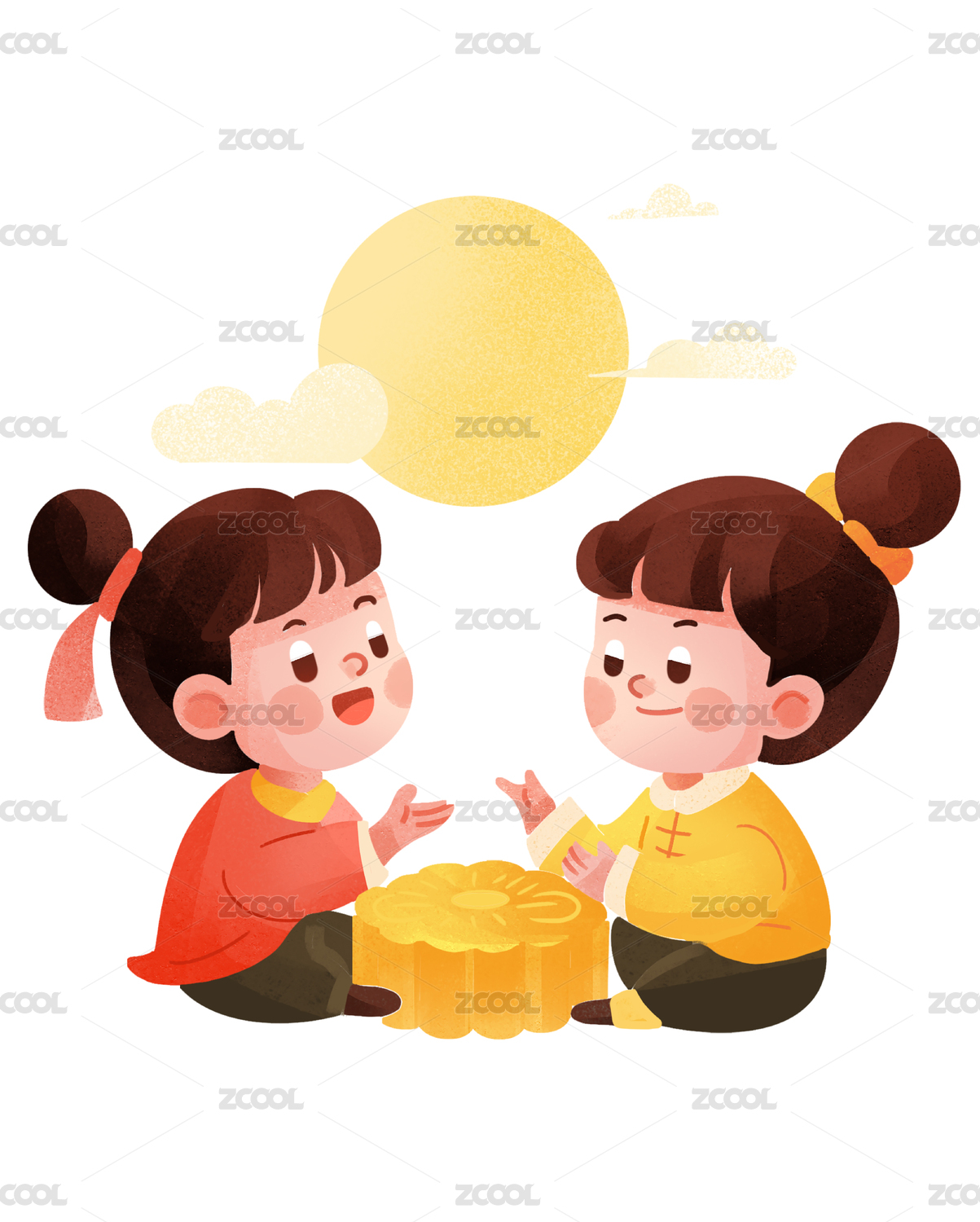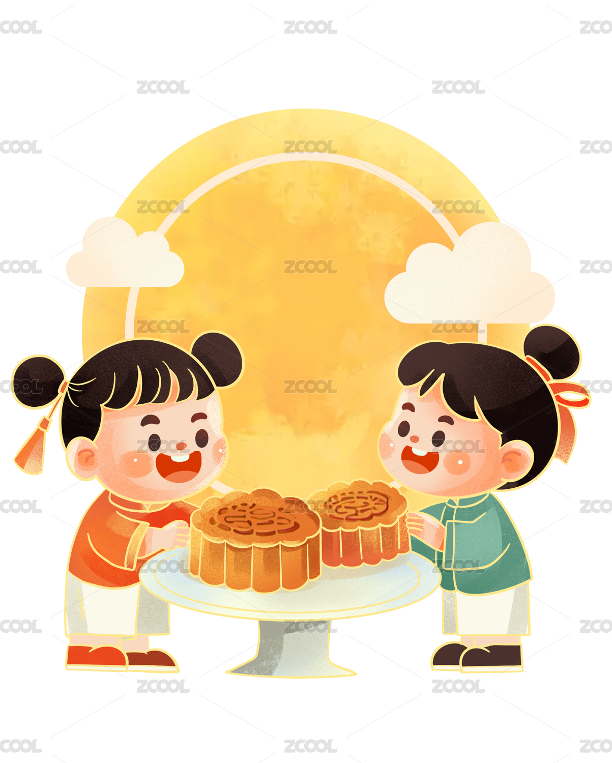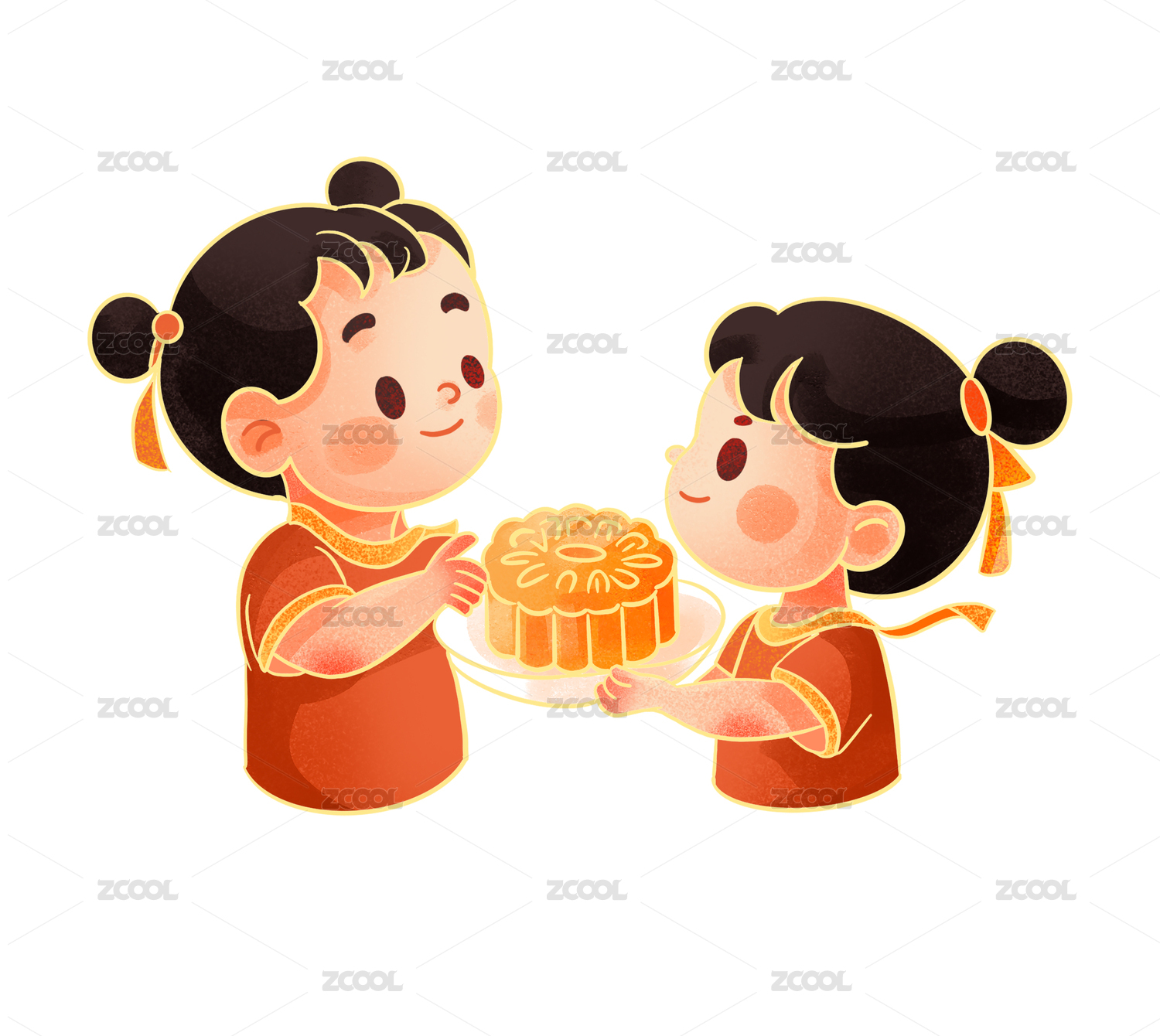 两个小孩一起吃月饼