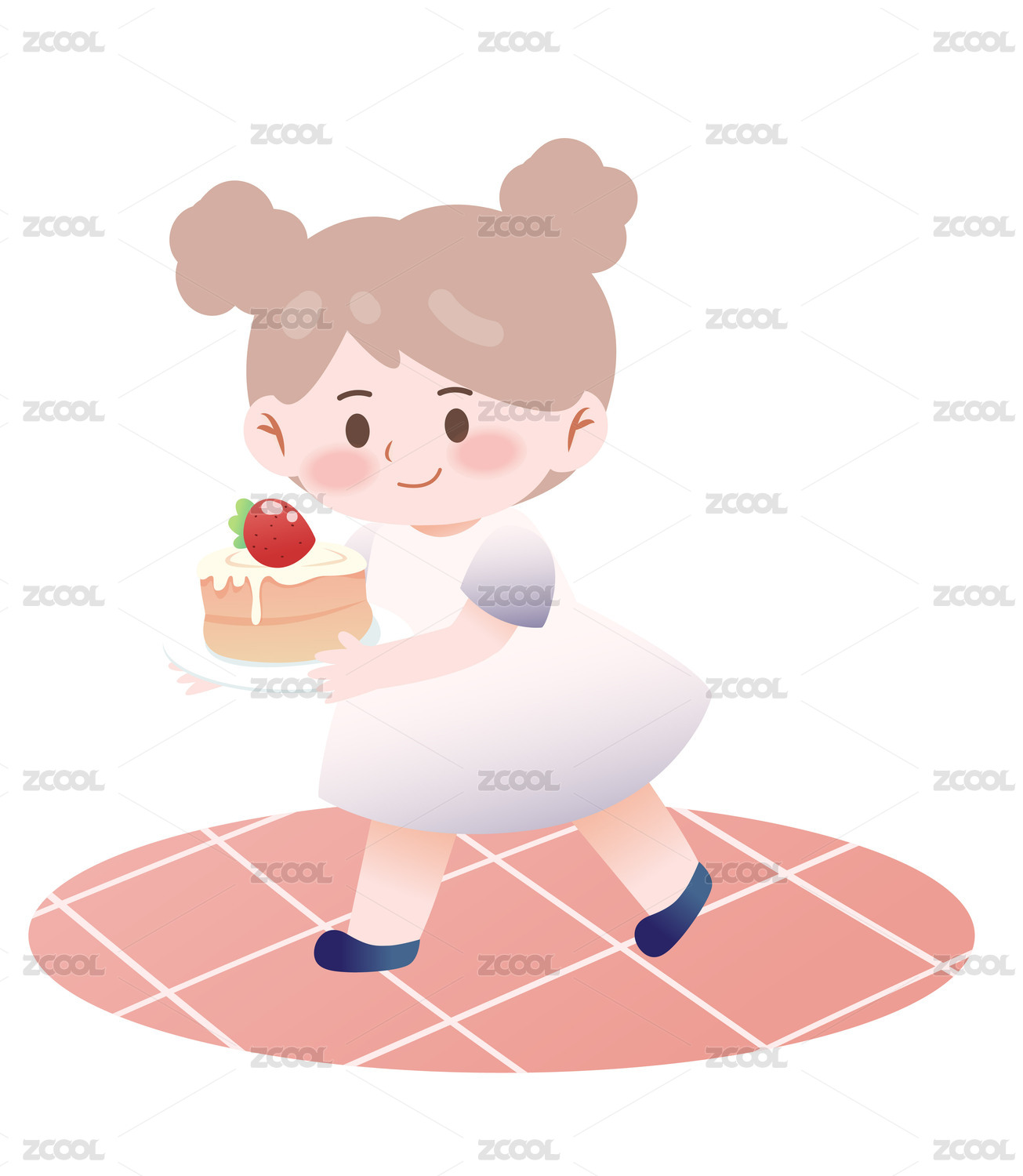 矢量插画小女孩拿着草莓蛋糕