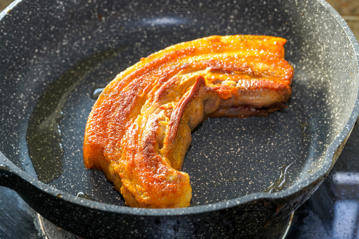 一块完整的美味油炸五花肉特写