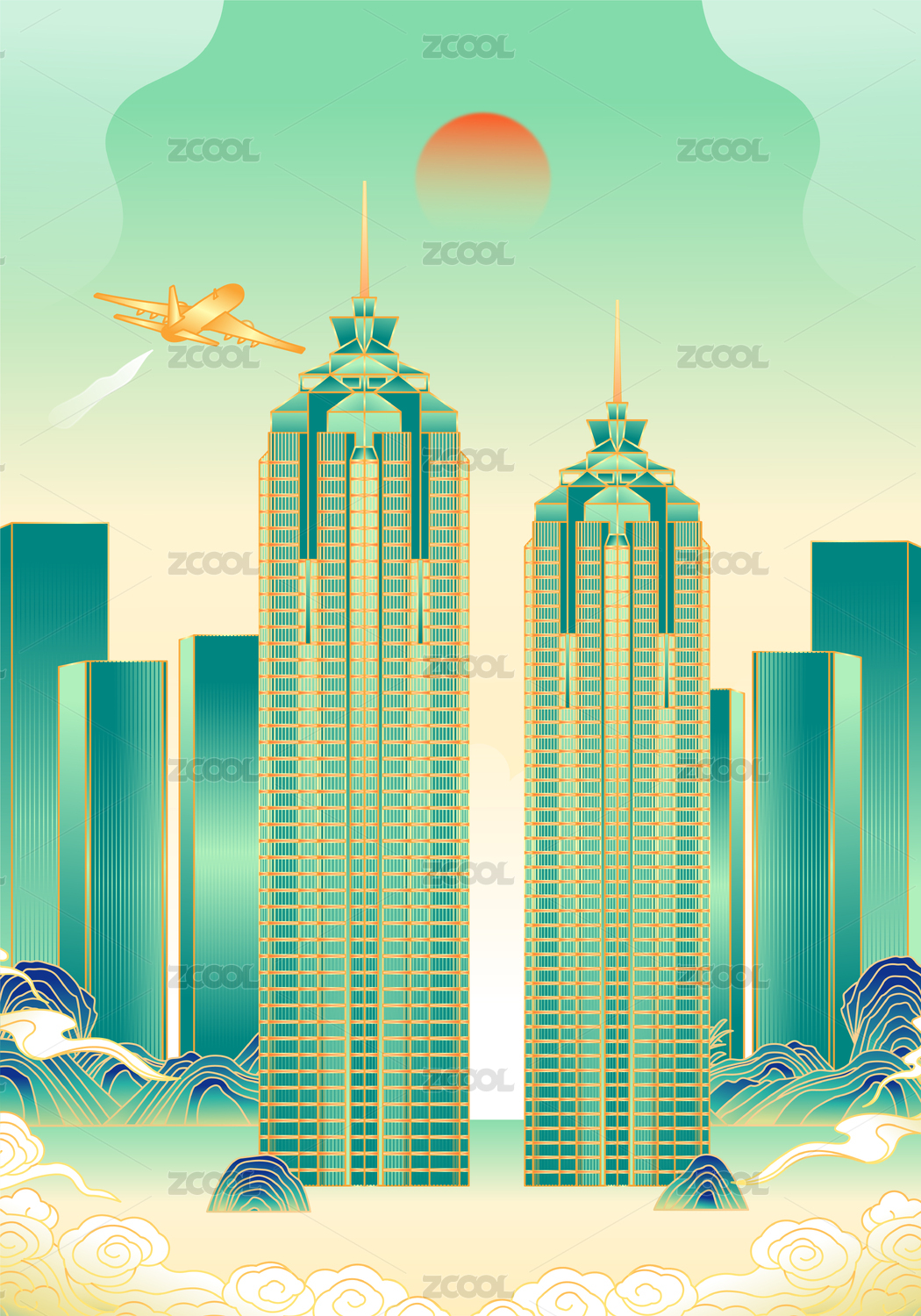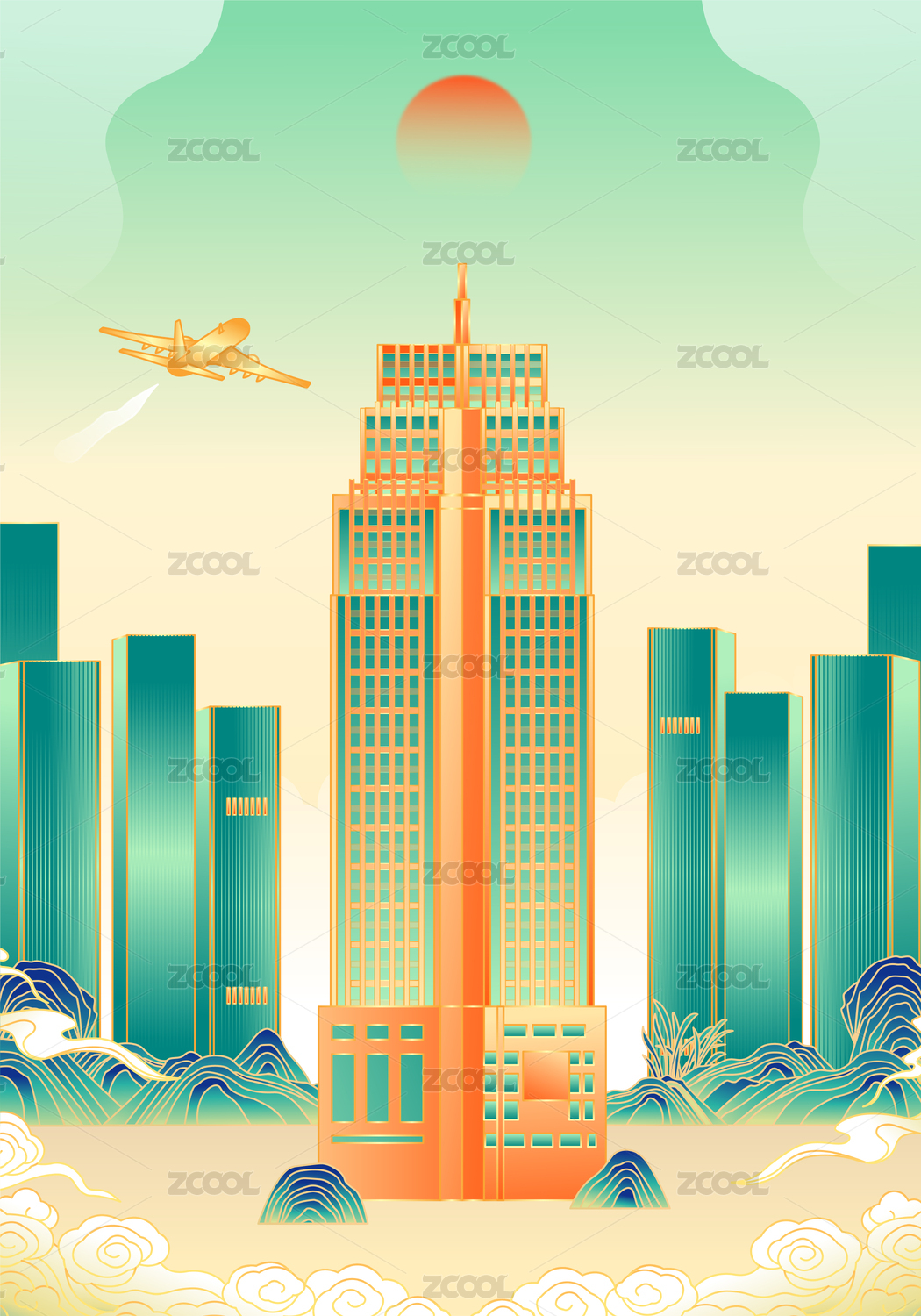 宁夏,银川,城市,建筑,高楼,旅游,国潮风,国风,剪影,建筑群