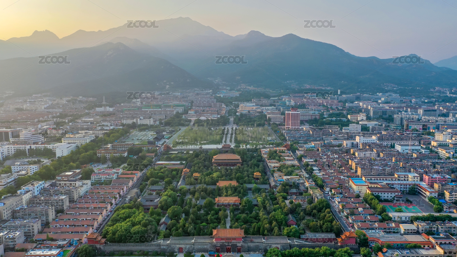 山东,泰安,泰山,岱庙,旅游,晚霞,城市,鸟瞰,全景,无人机