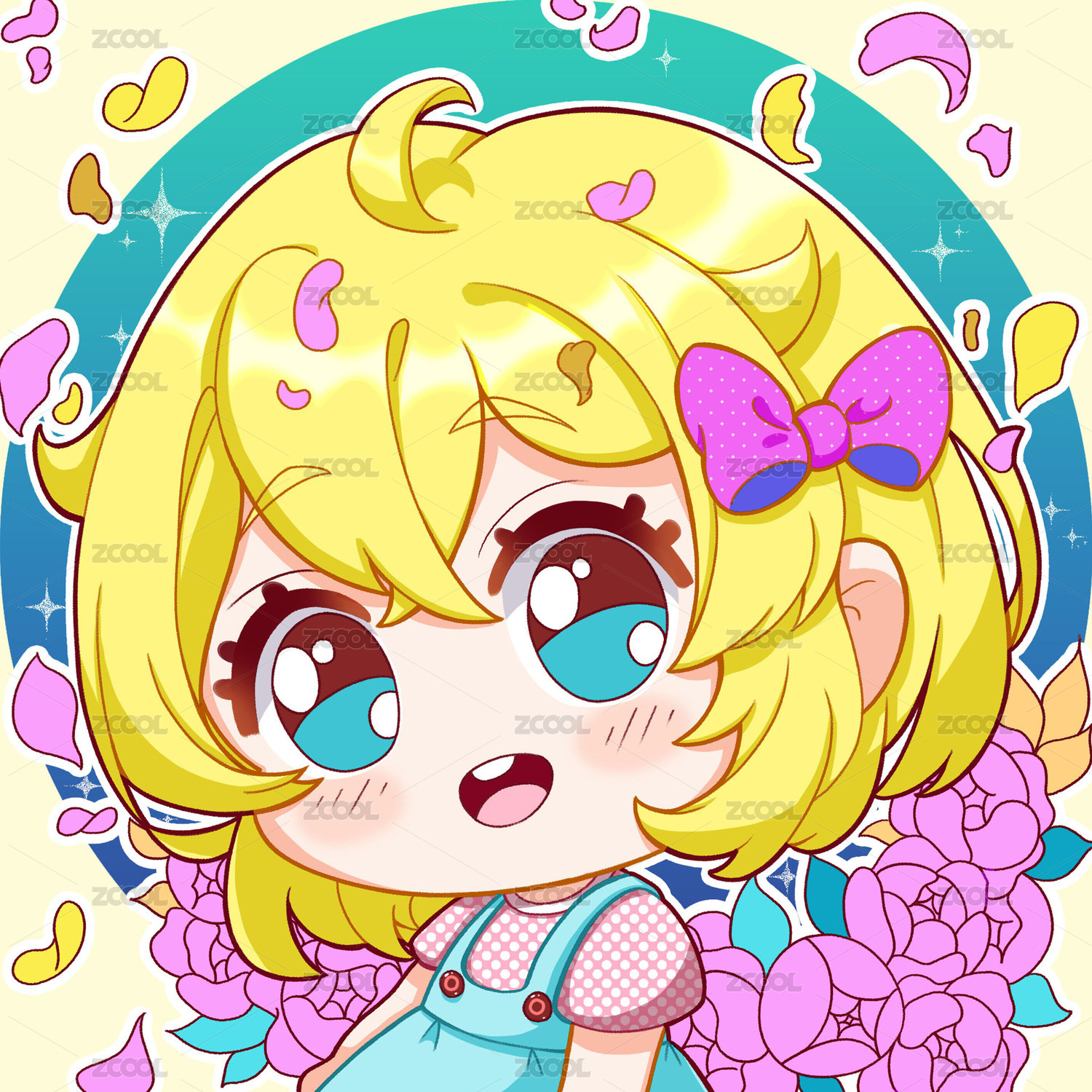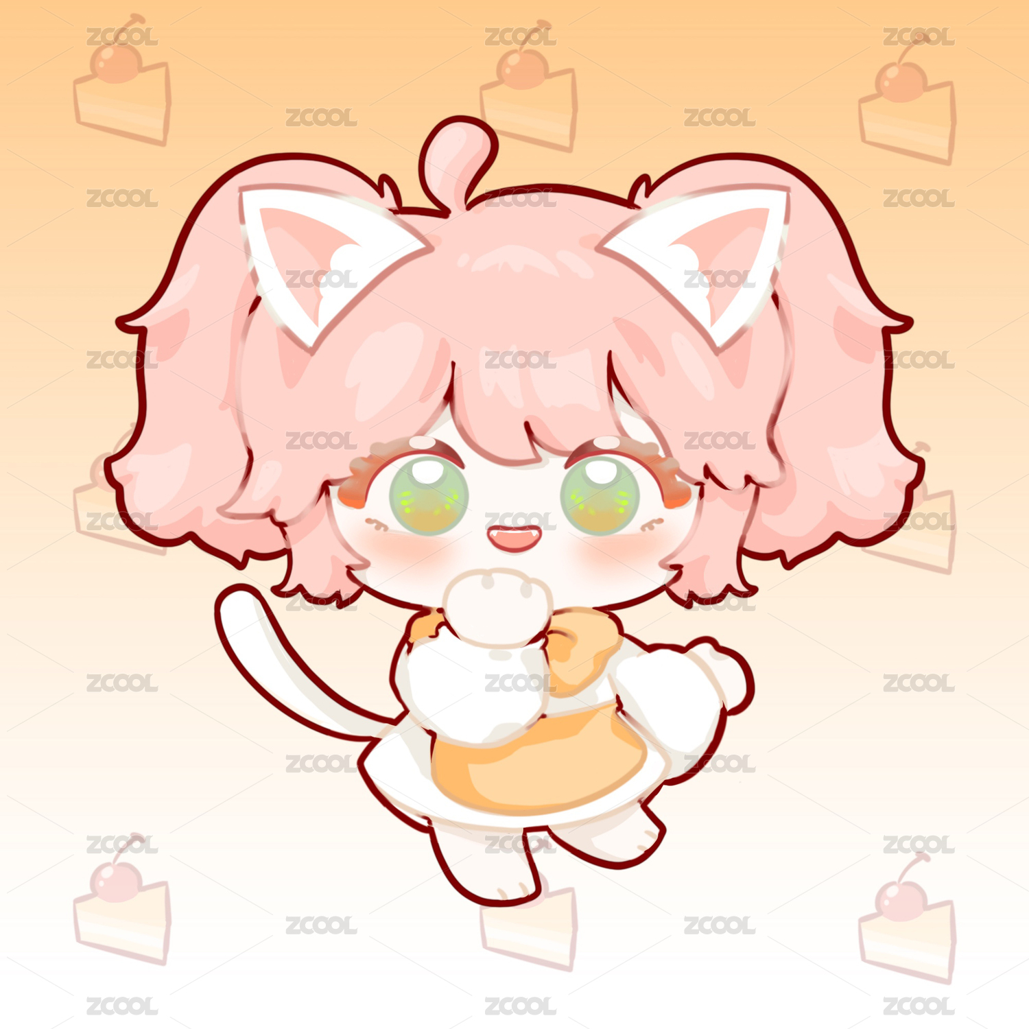 插画,猫,女孩,头像,清新,可爱,Q版,二次元,日系