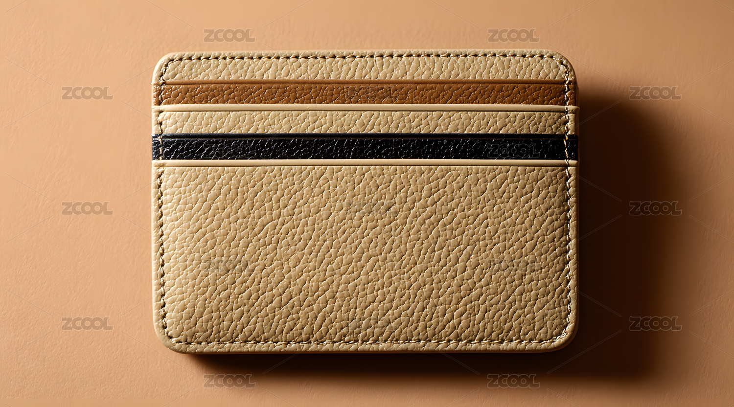 三色条纹皮革卡包