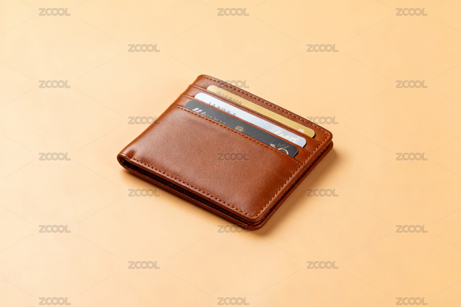 棕色钱包内插多张卡片