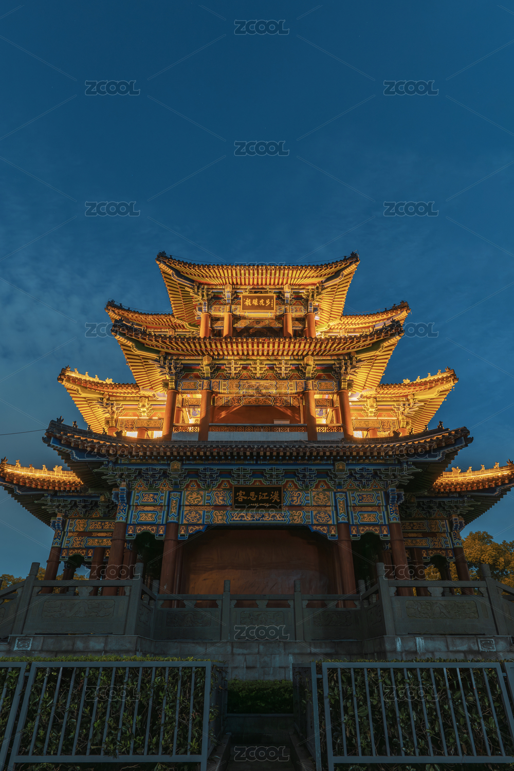 武汉龙王庙公园龙王阁蓝调时分夜景