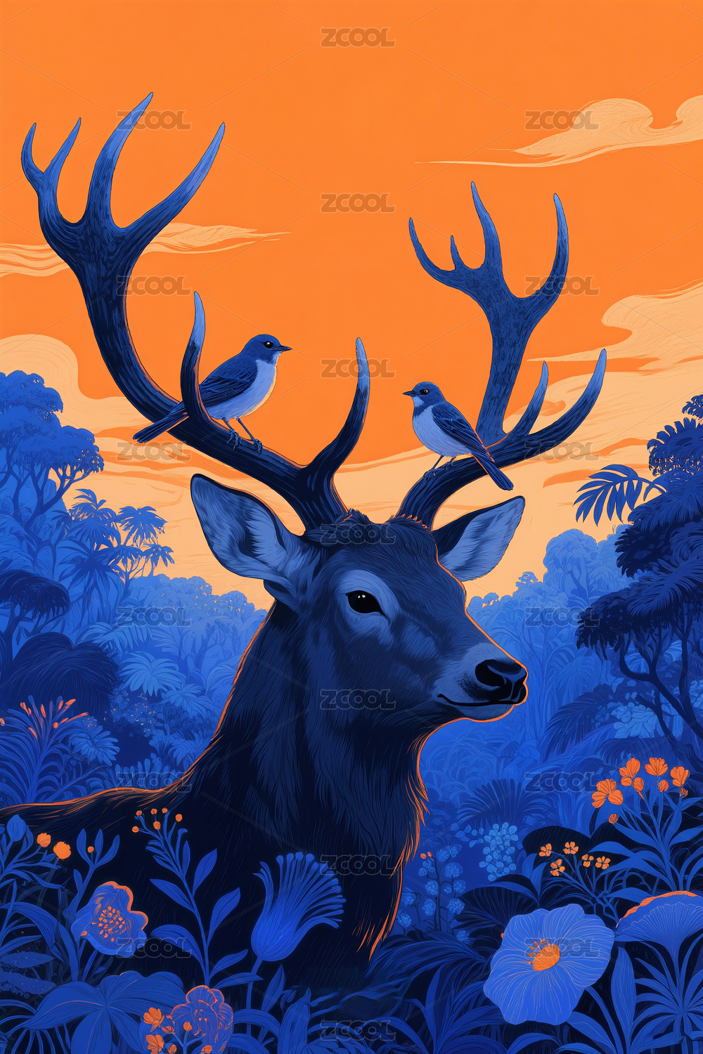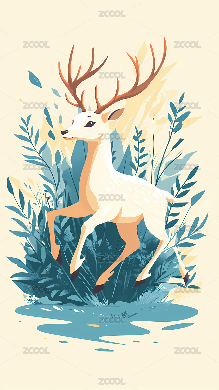 欧式时尚复古雄鹿写意插画