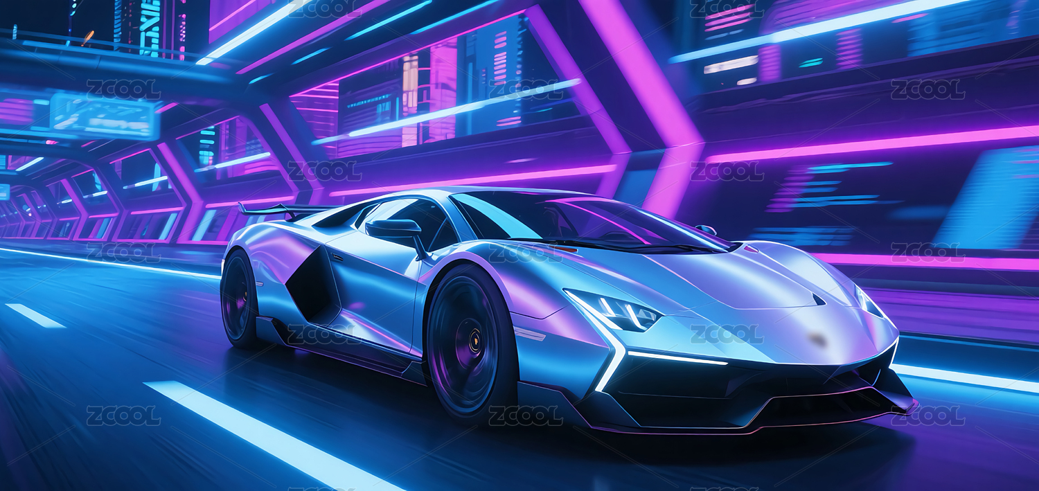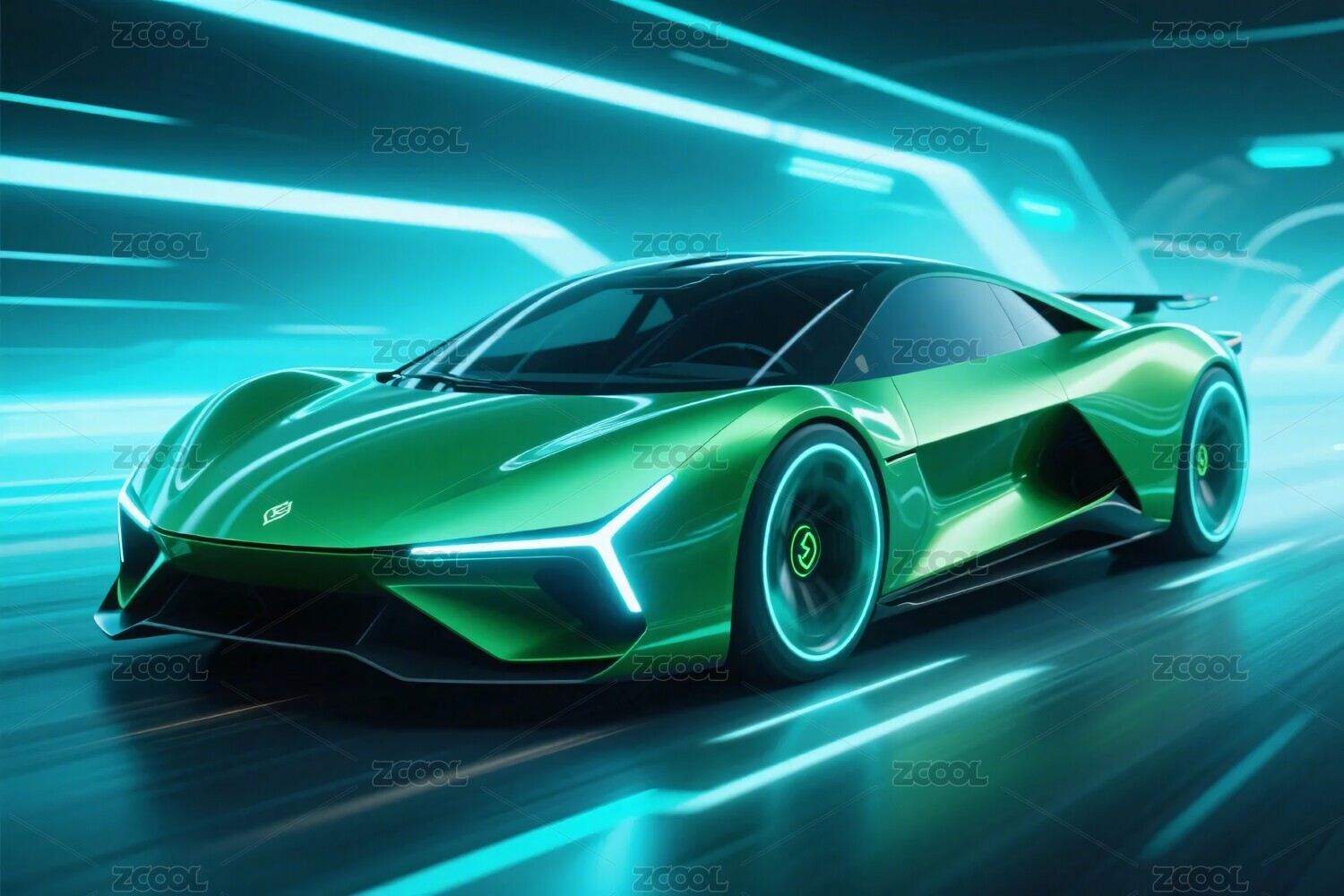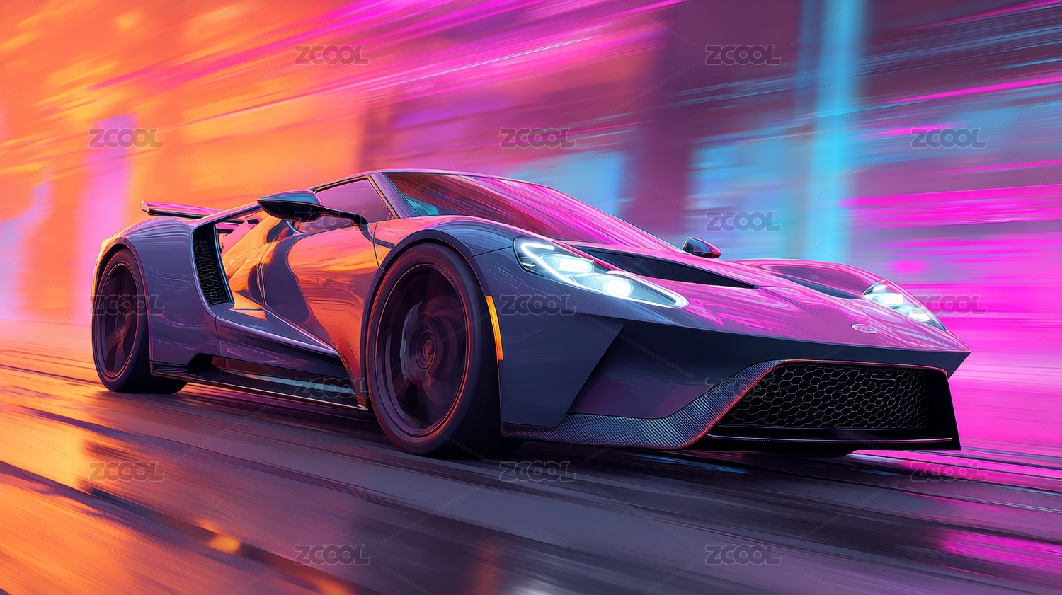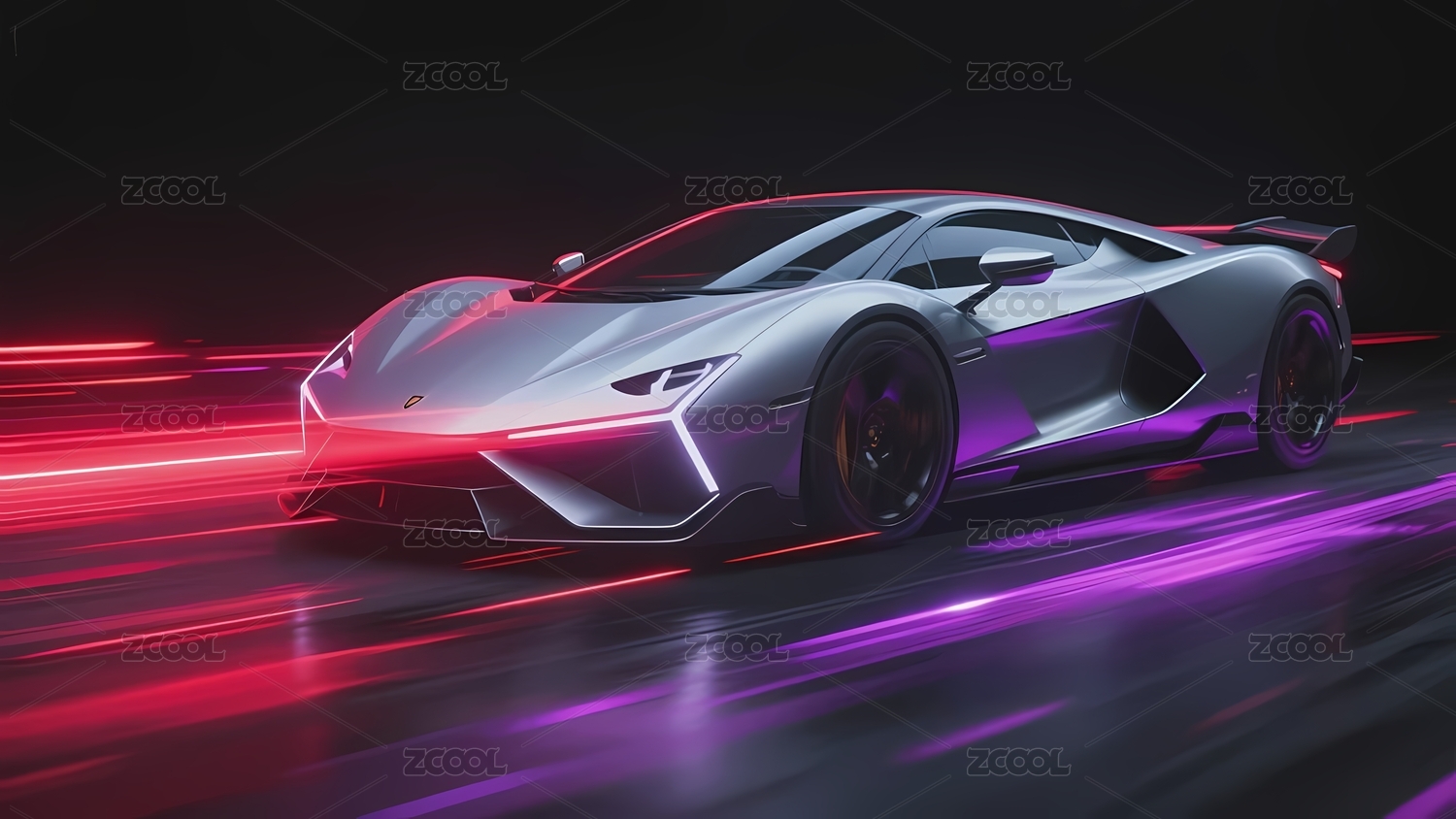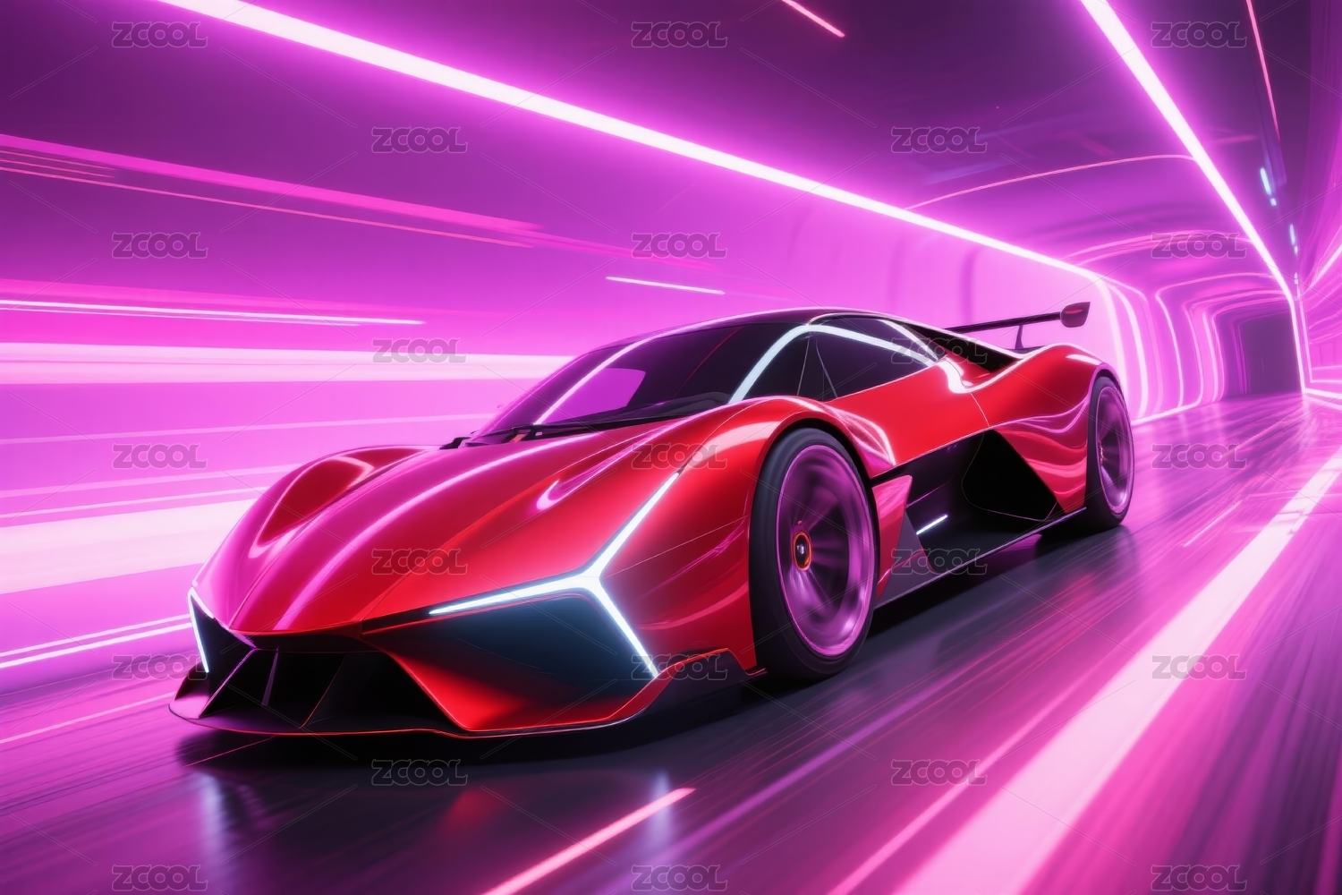 AIGCFG,赛博朋克,炫彩,玻璃,3D,科幻,金属,汽车,赛车,灯光