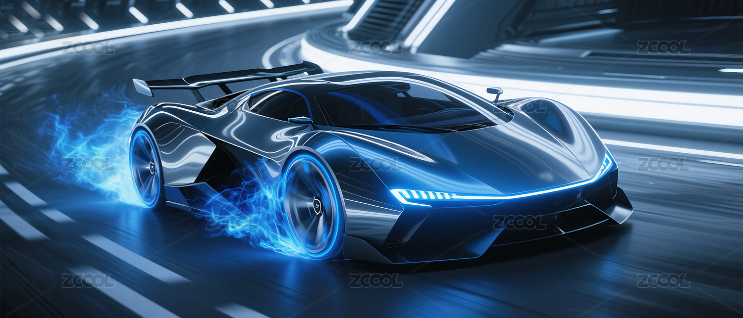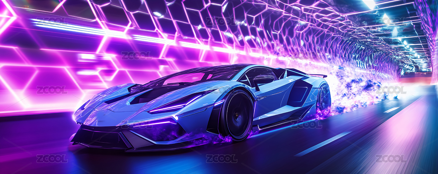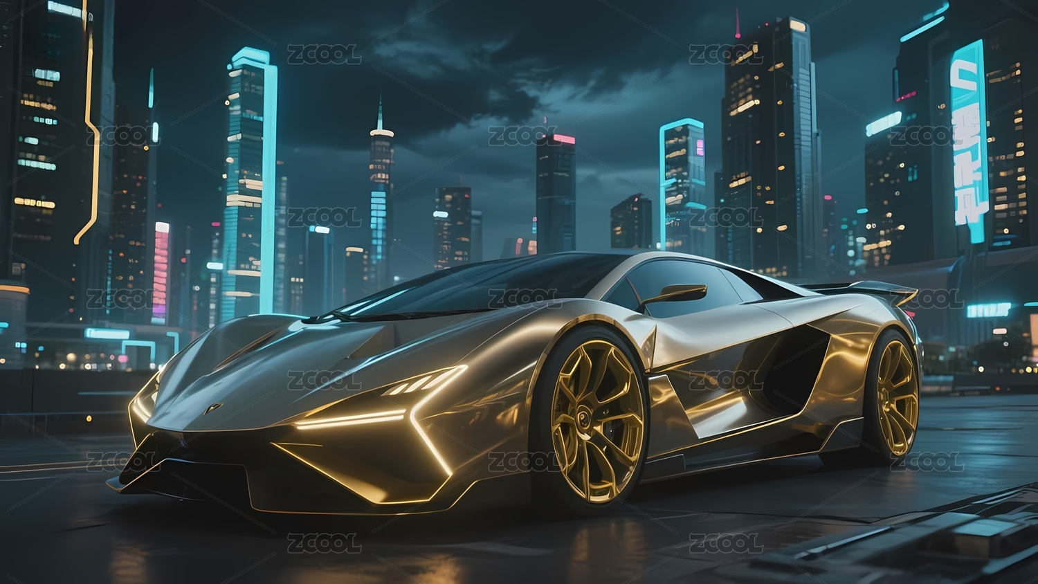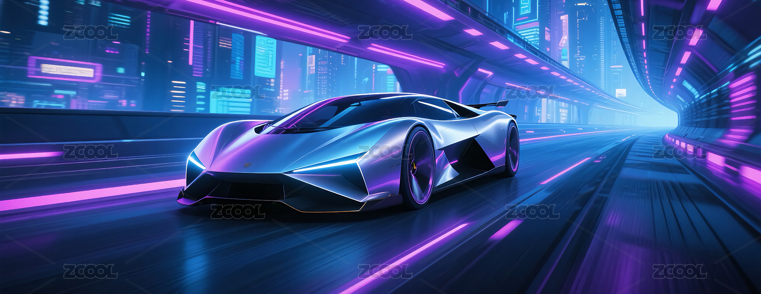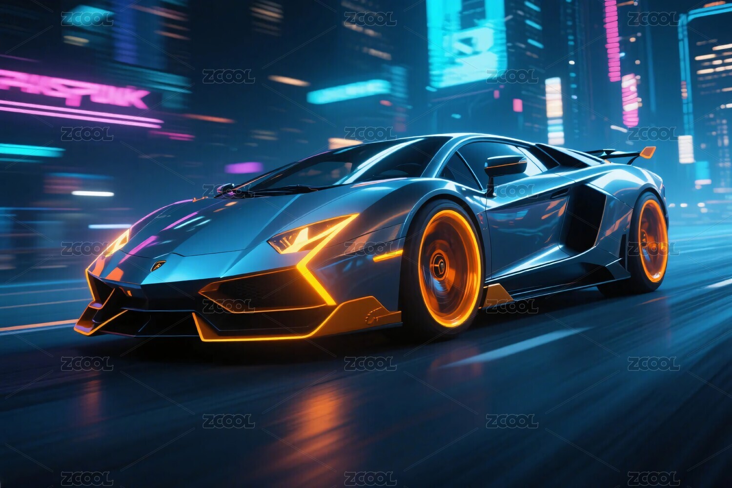 AIGCFG,赛博朋克,炫彩,玻璃,3D,科幻,金属,汽车,赛车,灯光