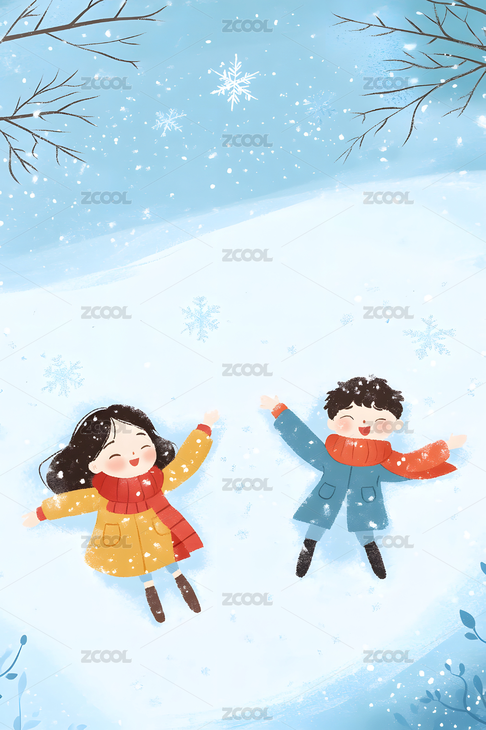卡通冬季冬天冬至情侣朋友约会出游旅行旅游