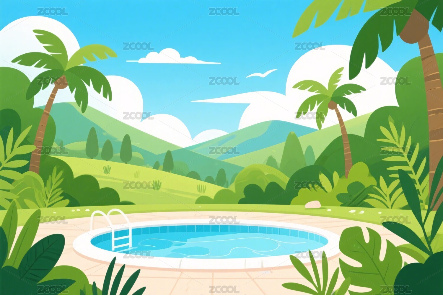 插画,矢量,剪贴画,夏天节假日,节日,假日,后院,後院,后庭,池塘