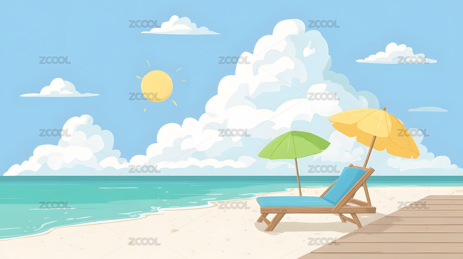 夏天海边人物休闲乘凉插画立夏节气海滩海报