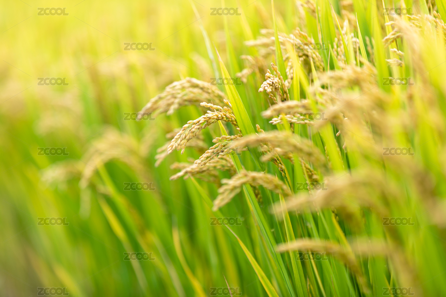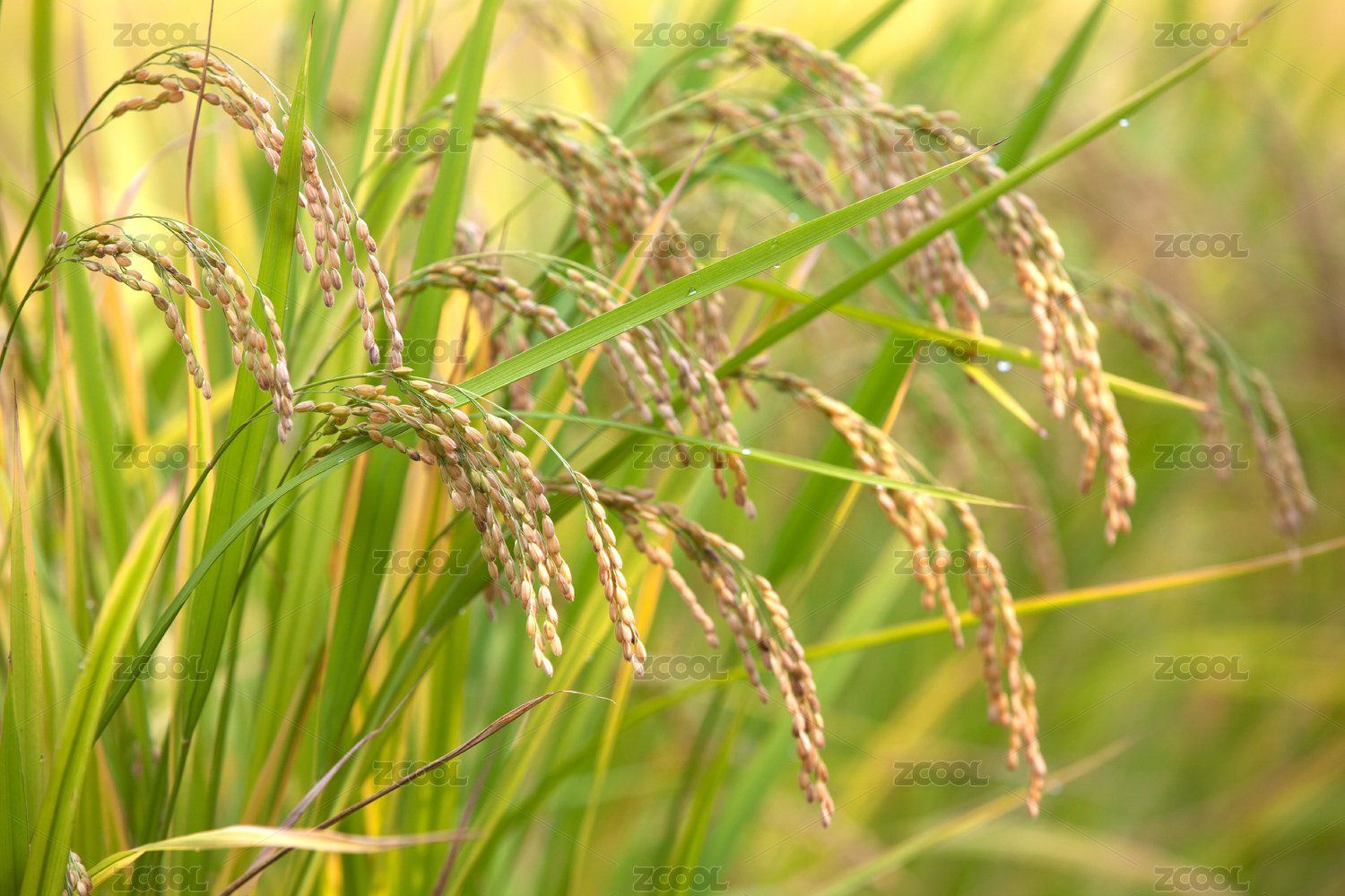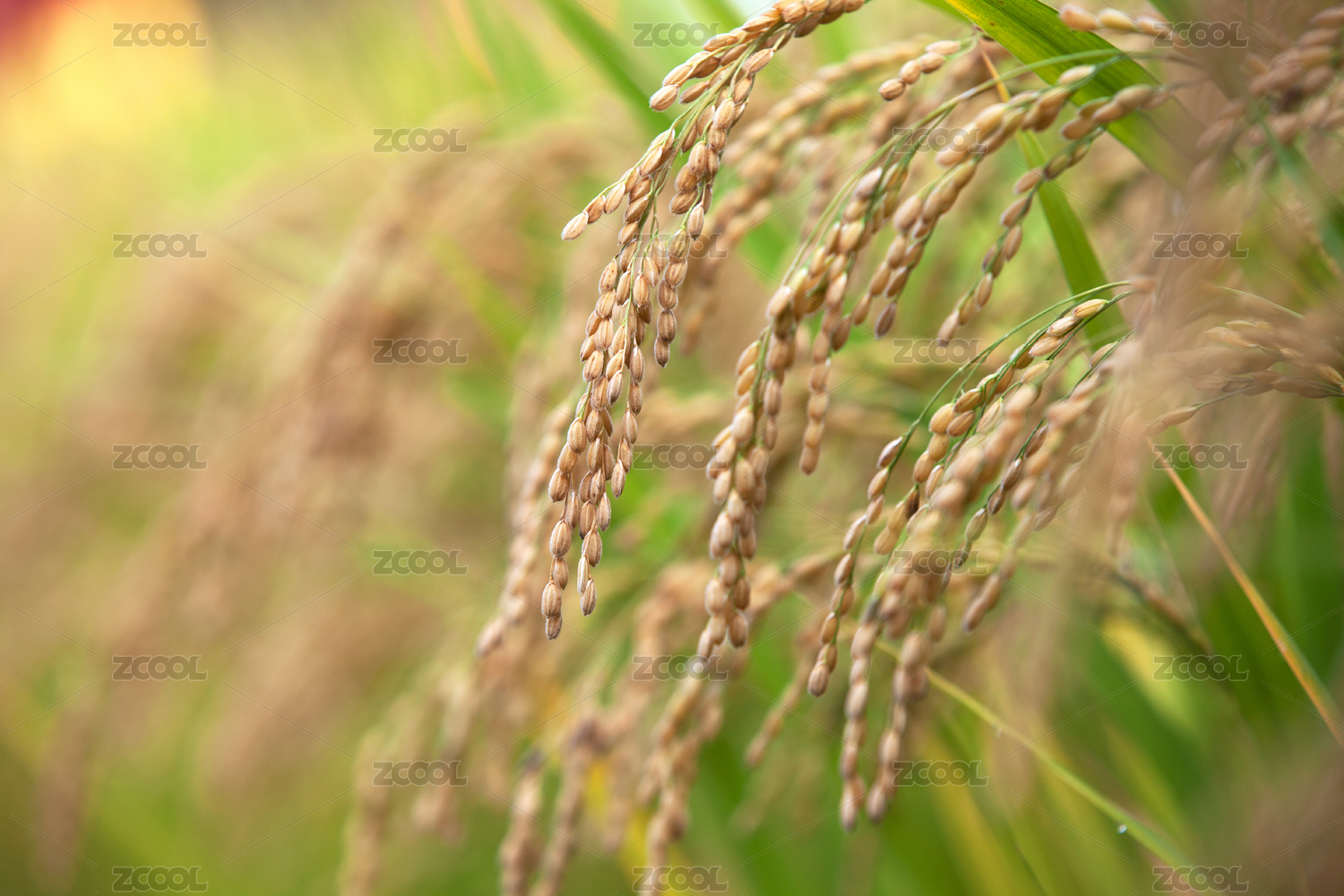 田野里颗粒饱满即将成熟的水稻稻穗特写