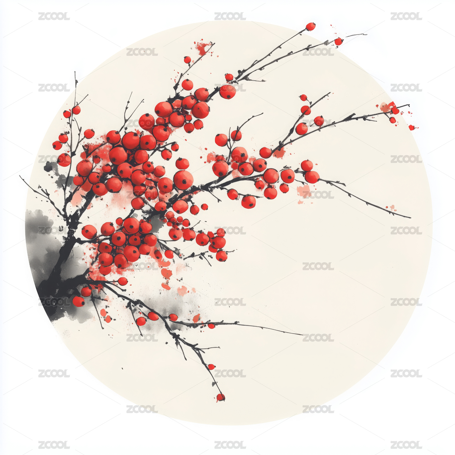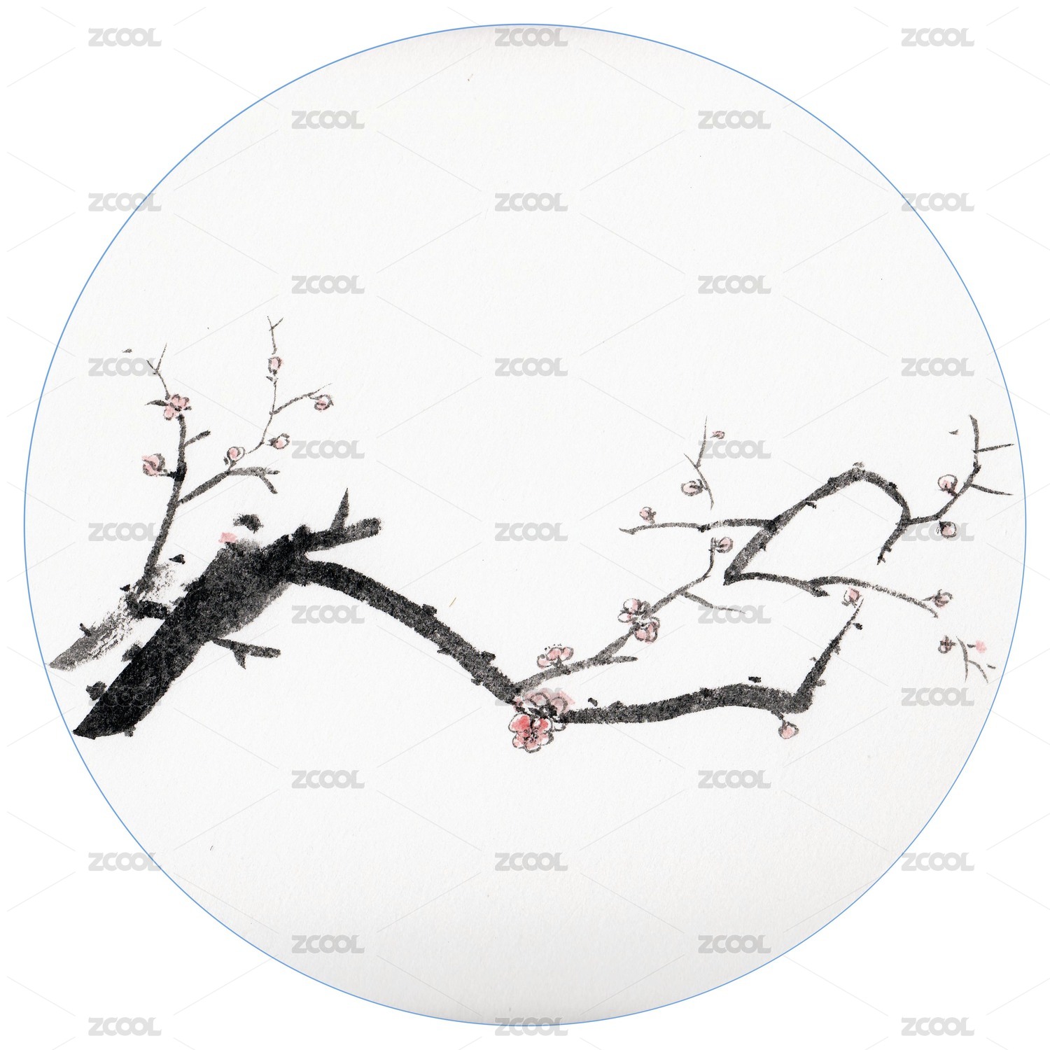 插画,背景,圆形,水墨,手绘,国画,田园,淡雅,清新,复古