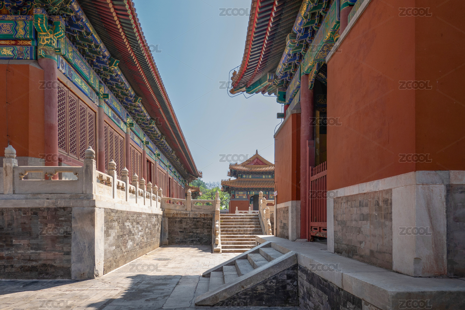 蓝天下的中国北京故宫博物馆的古宫殿建筑