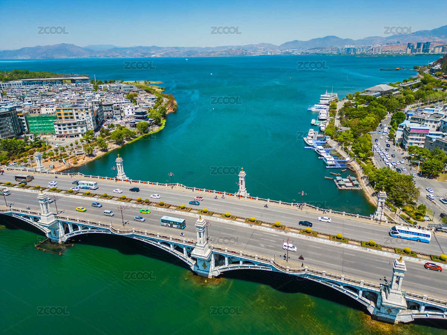 云南大理城市西洱河兴盛大桥航拍洱海