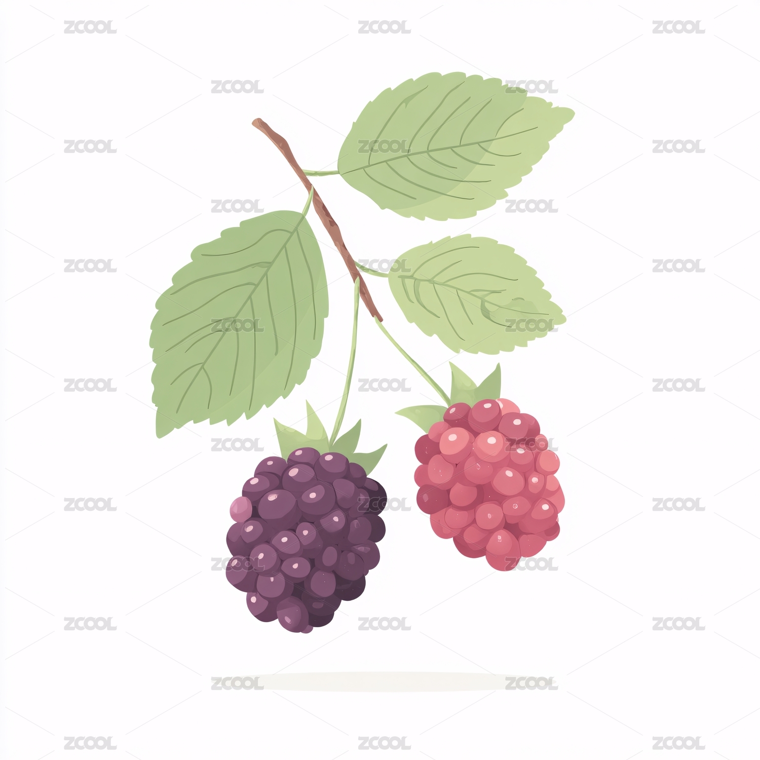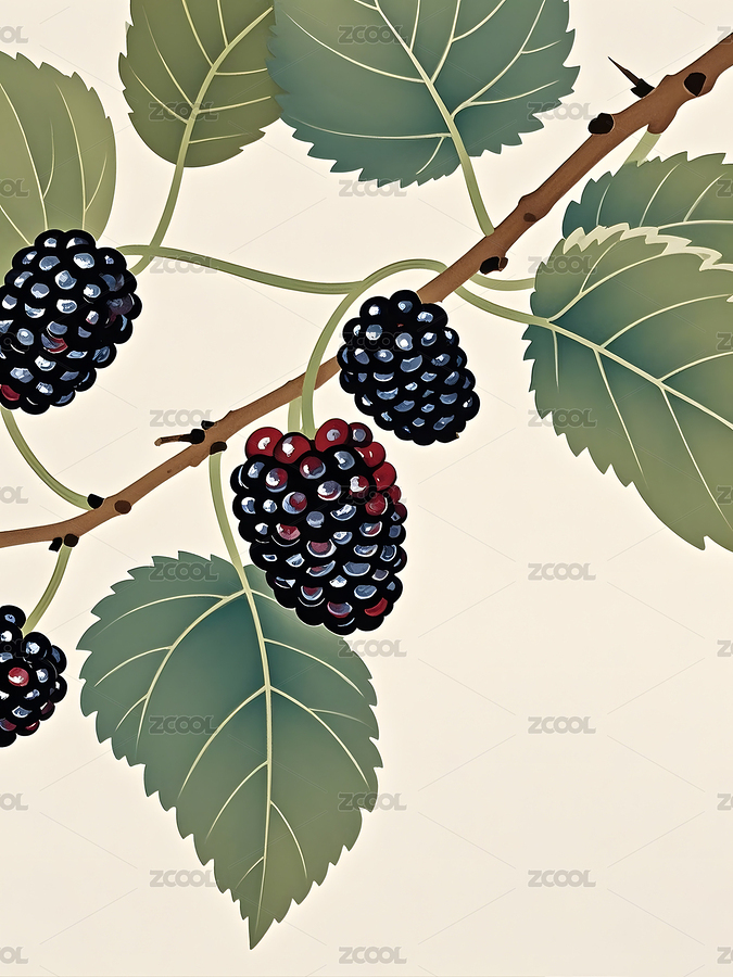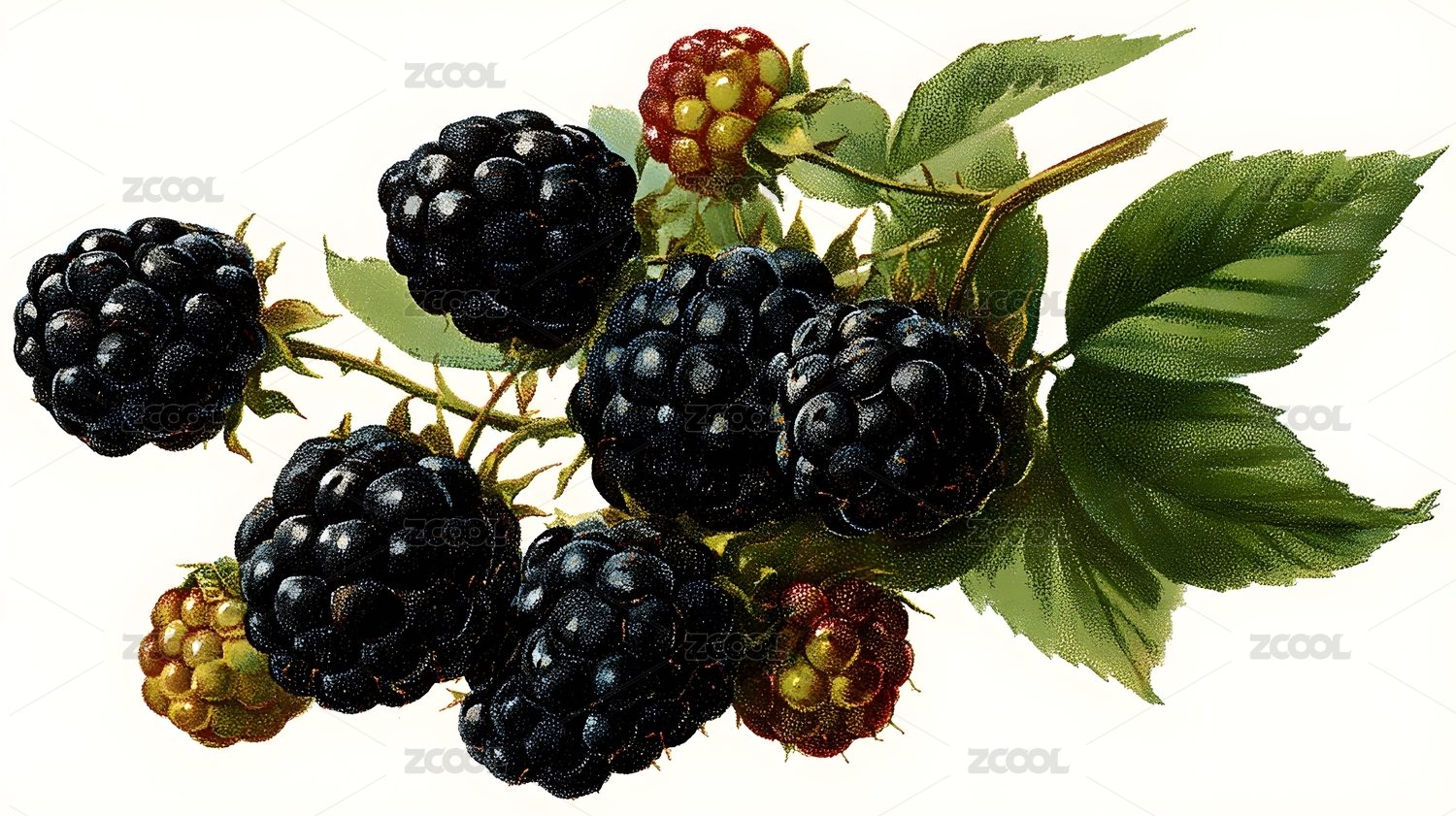 黑莓枝条 鲜艳欲滴 水彩描绘