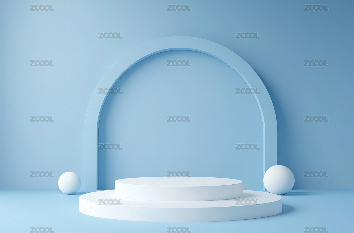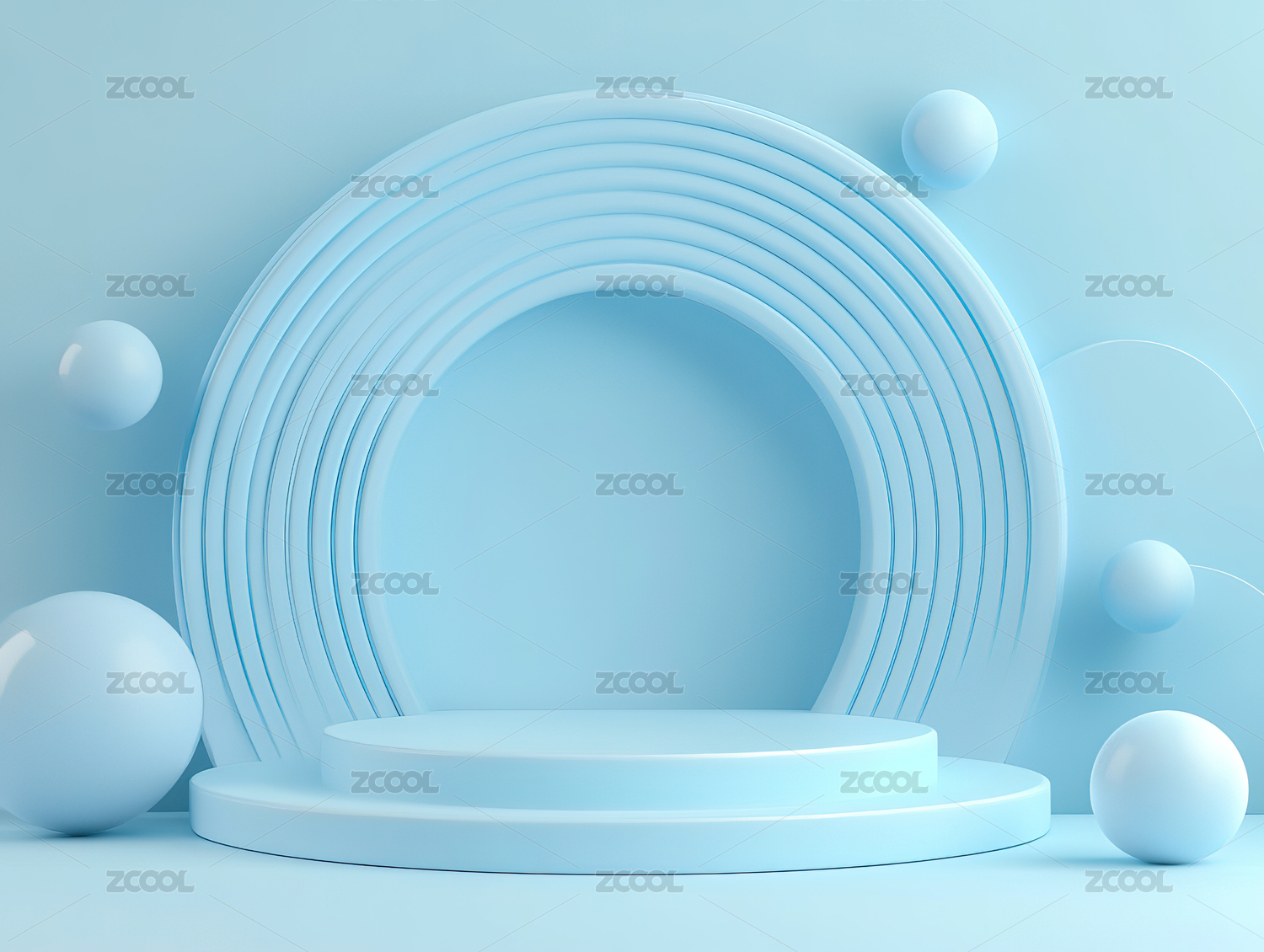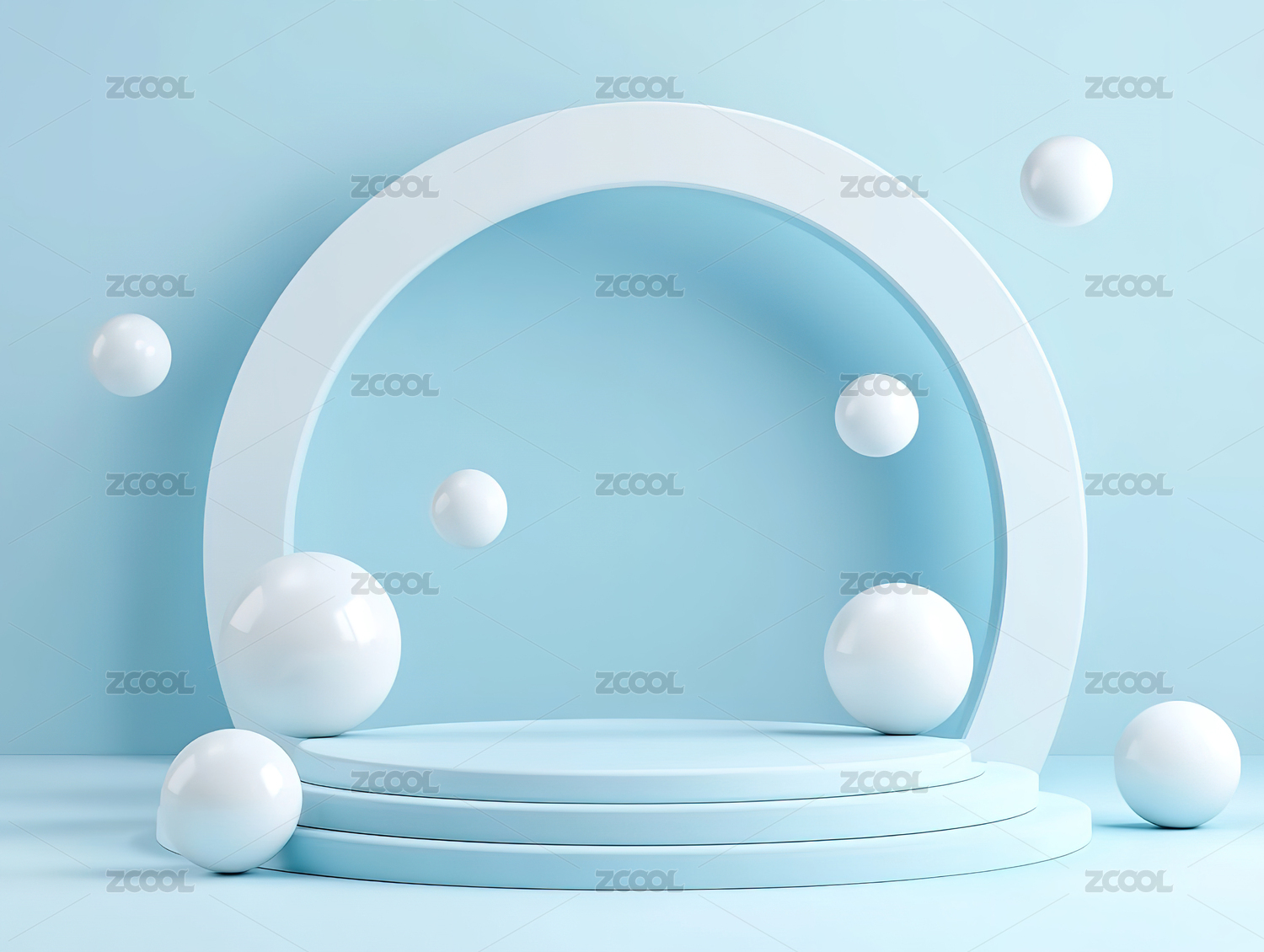 3D浅蓝色圆形拱门电商产品展台