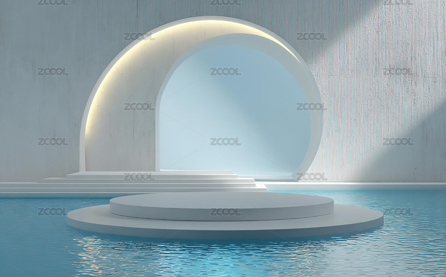 水池中的圆形拱门与台阶