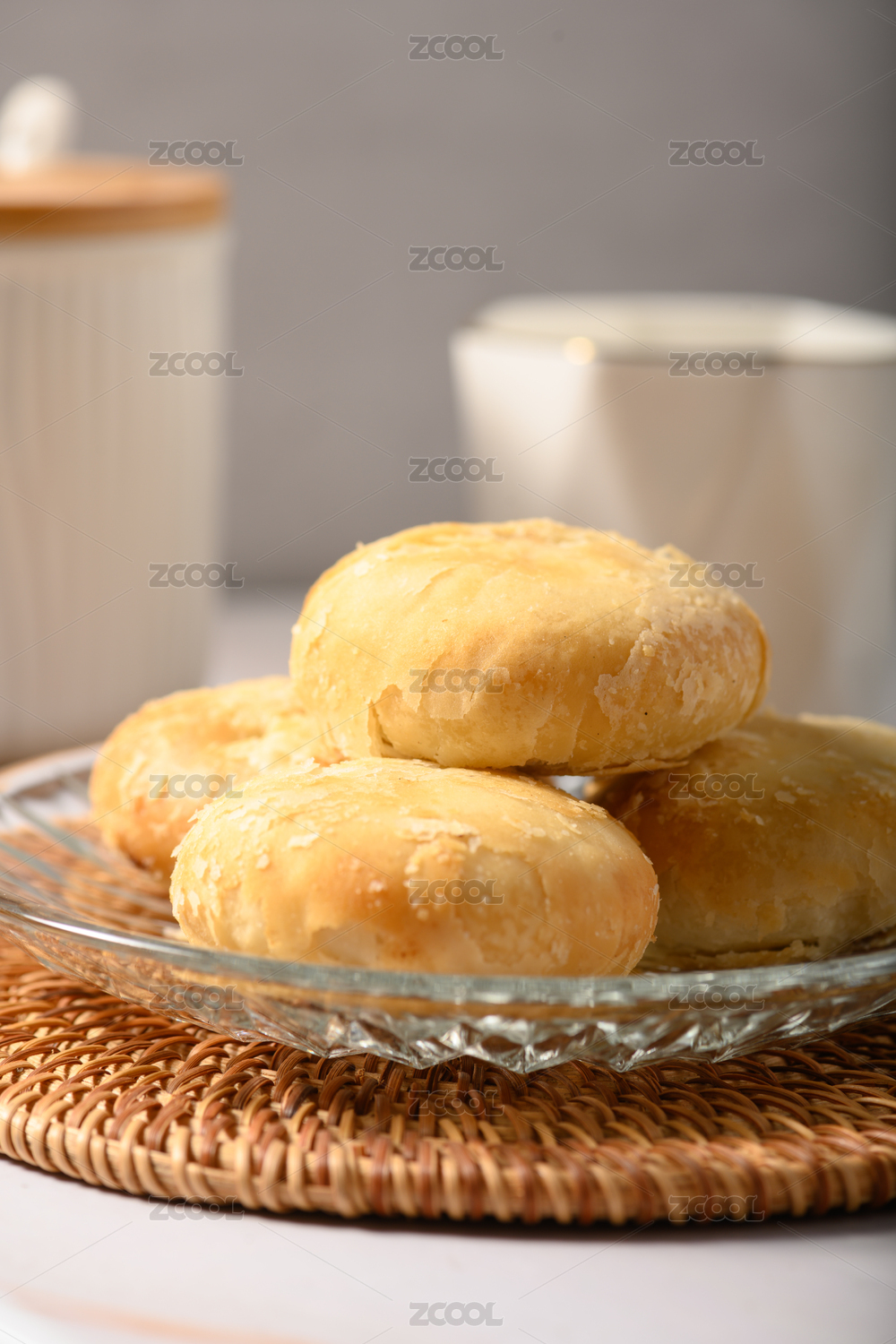 传统糕点小吃牛舌饼摆放在桌面上特写
