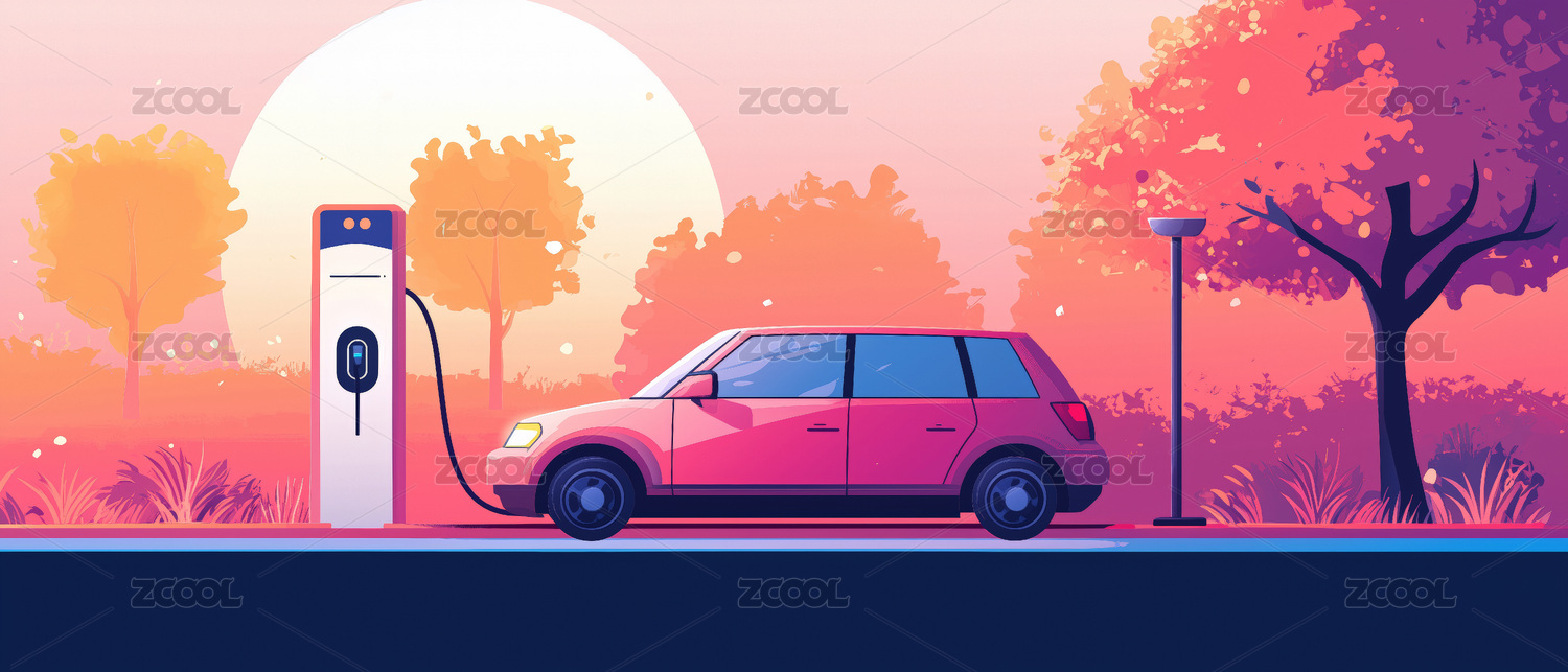 新能源电动汽车充电场景插画