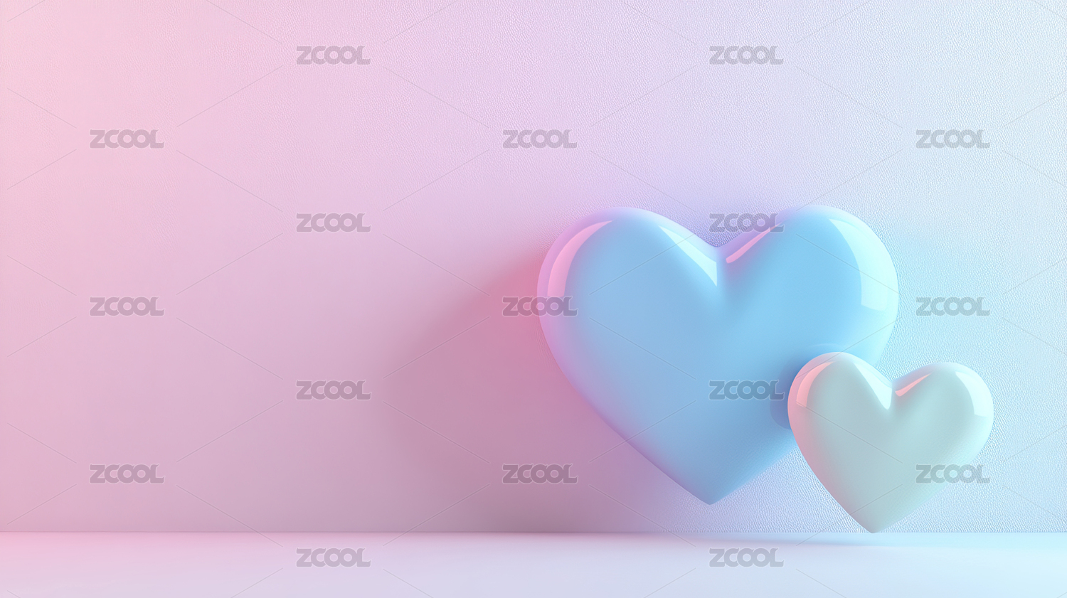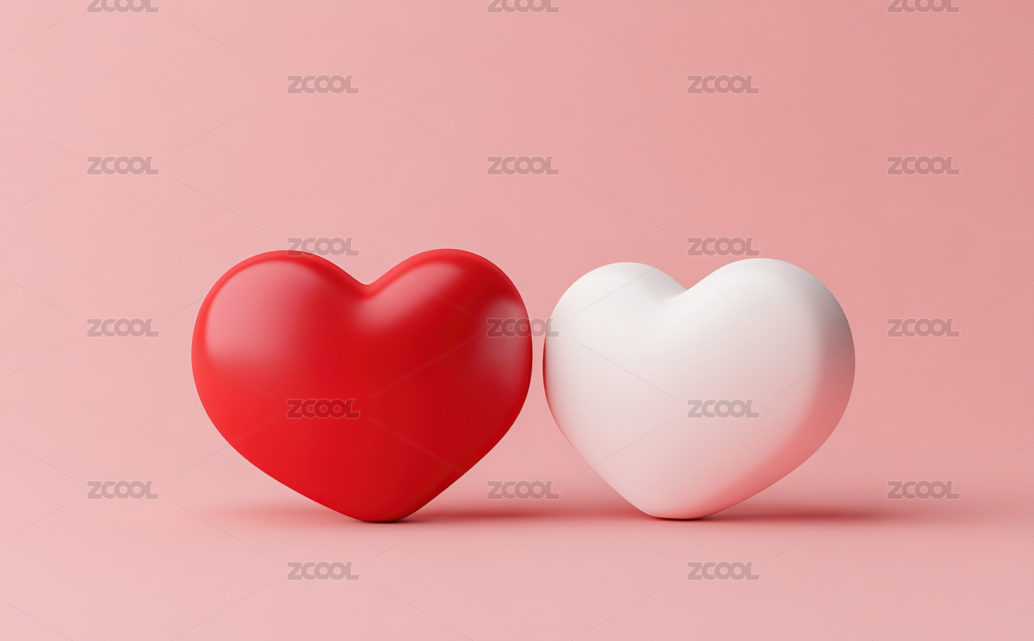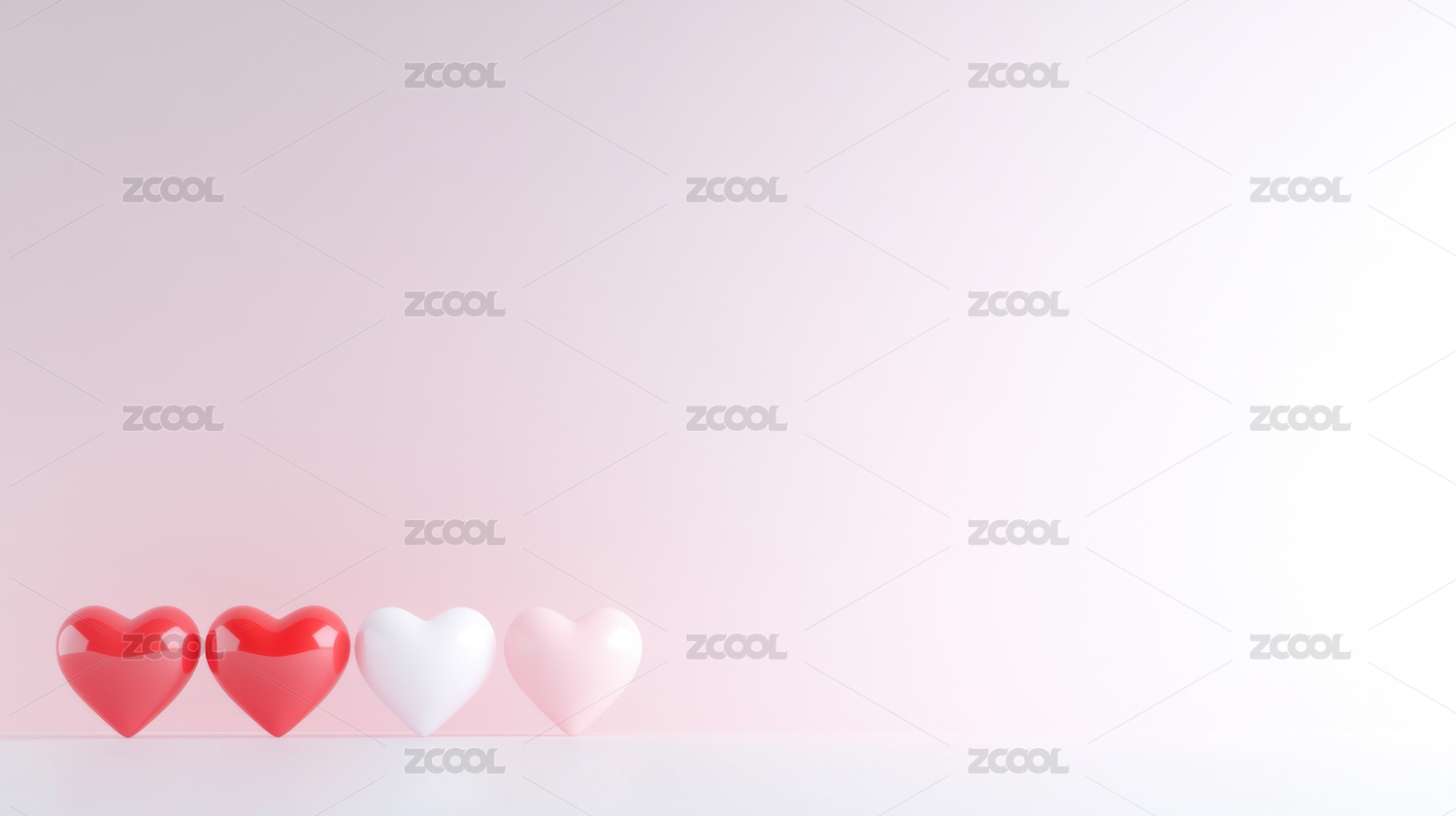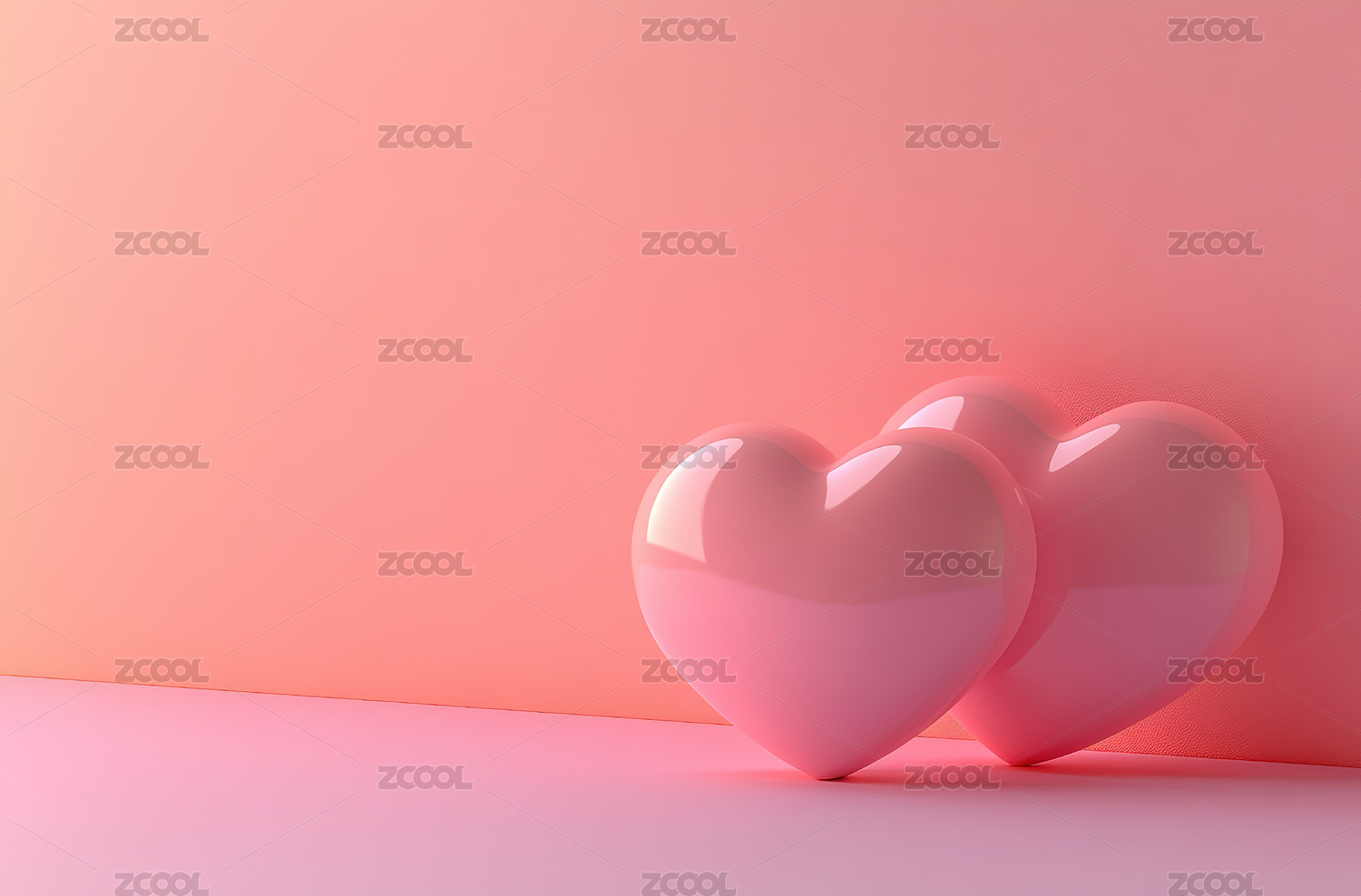 一颗红心特写镜头粉红色背景上有三颗较小红
