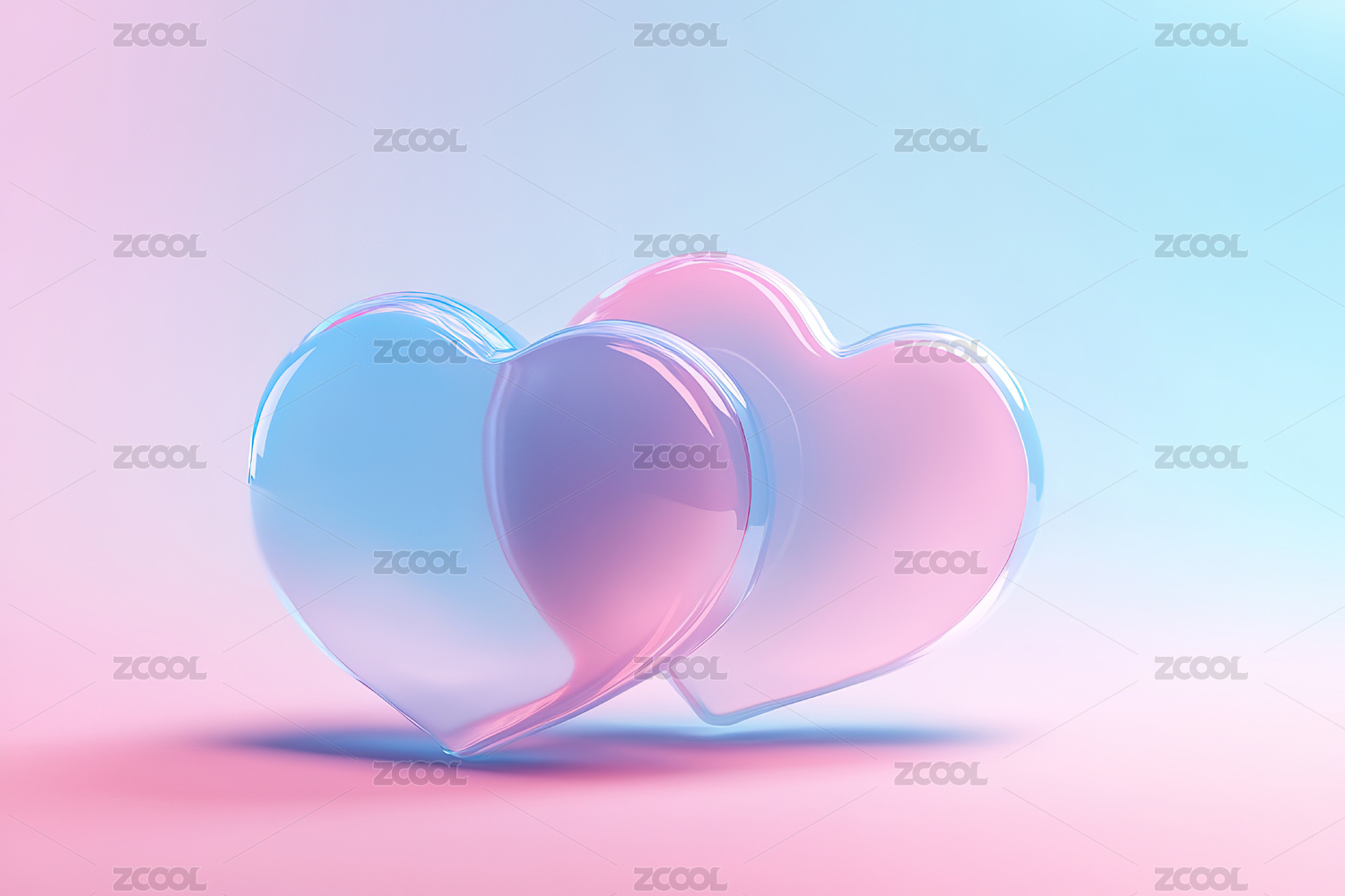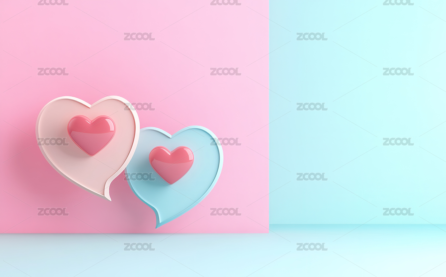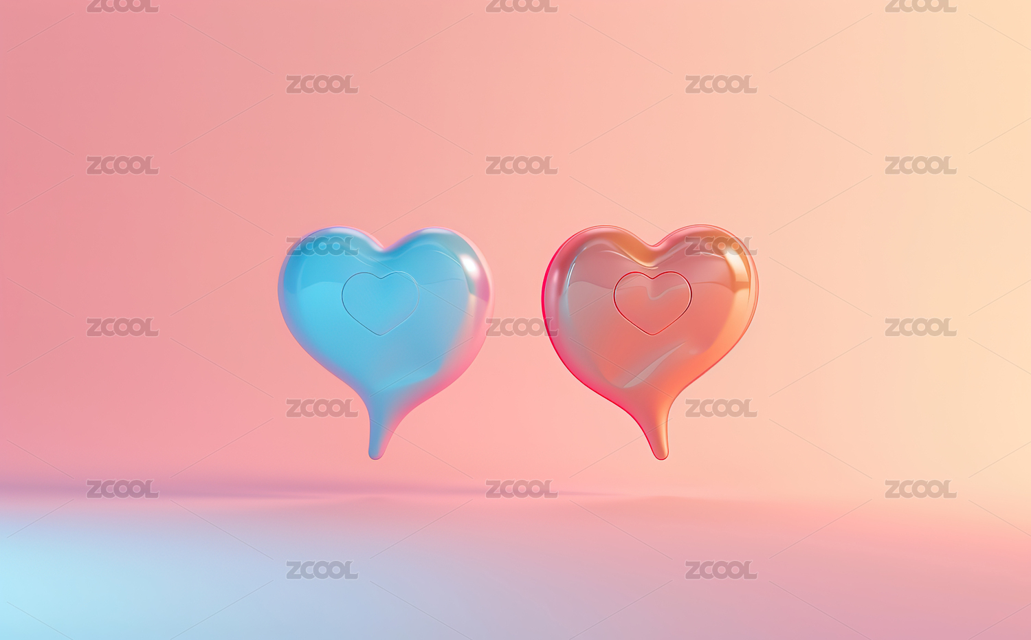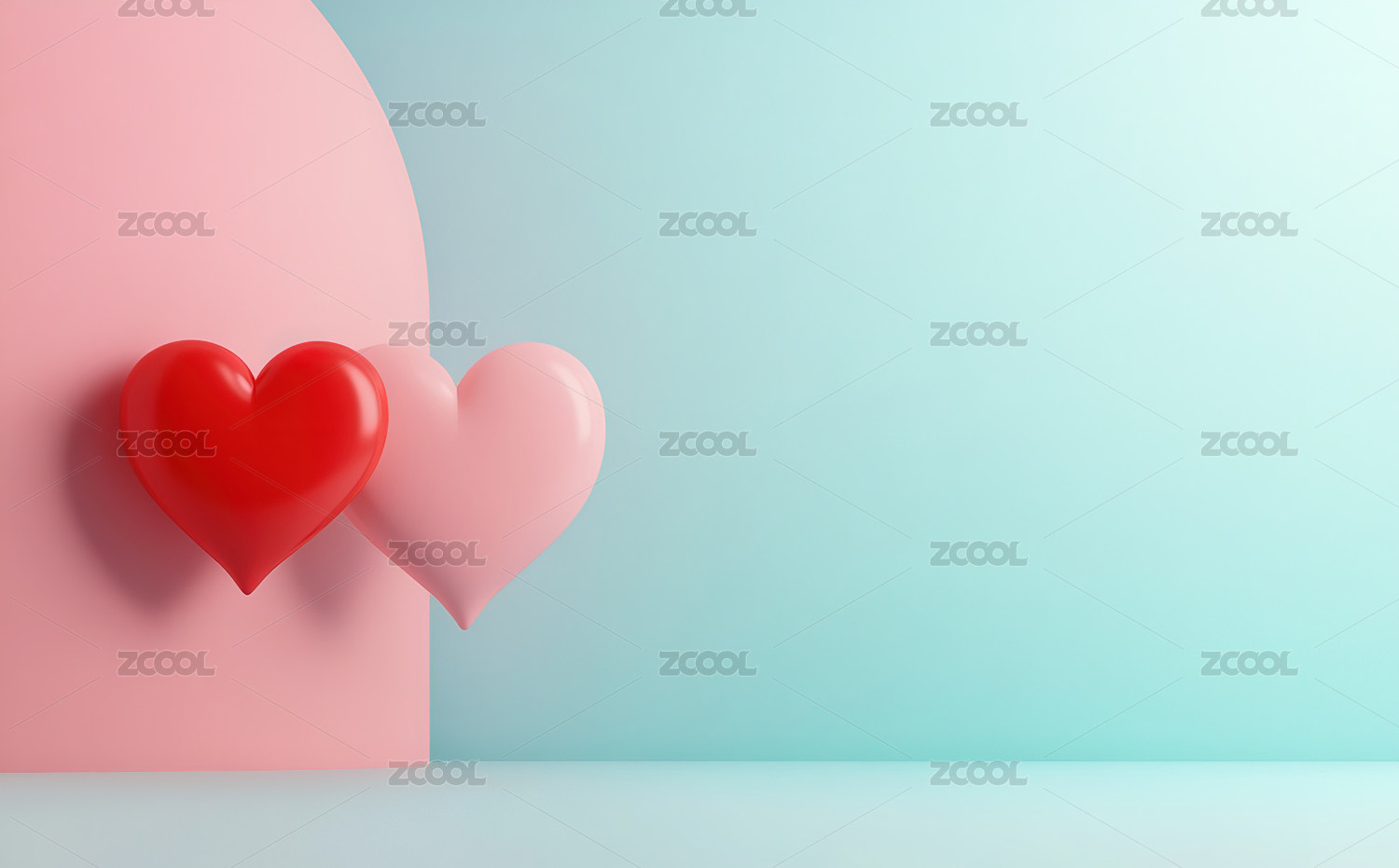 一颗红心特写镜头粉红色背景上有三颗较小红