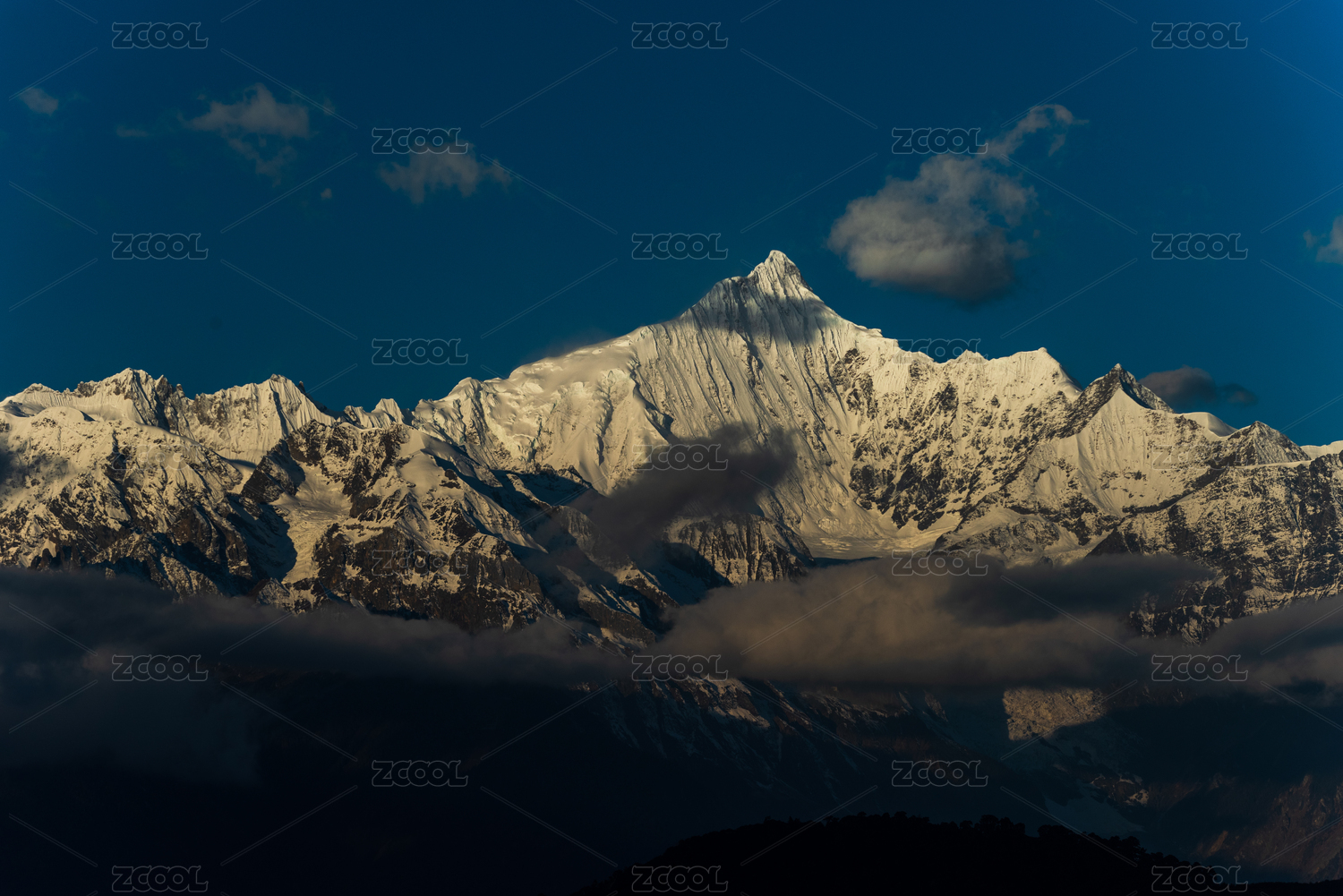 中国云南迪庆云层上的卡瓦格博