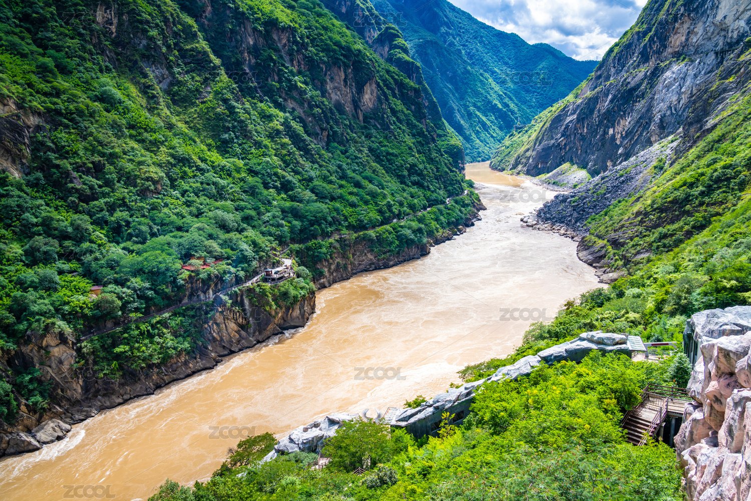 云南香格里拉虎跳峡景区中的金沙江