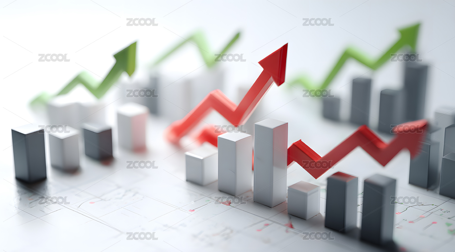 红箭头柱状图金融场景