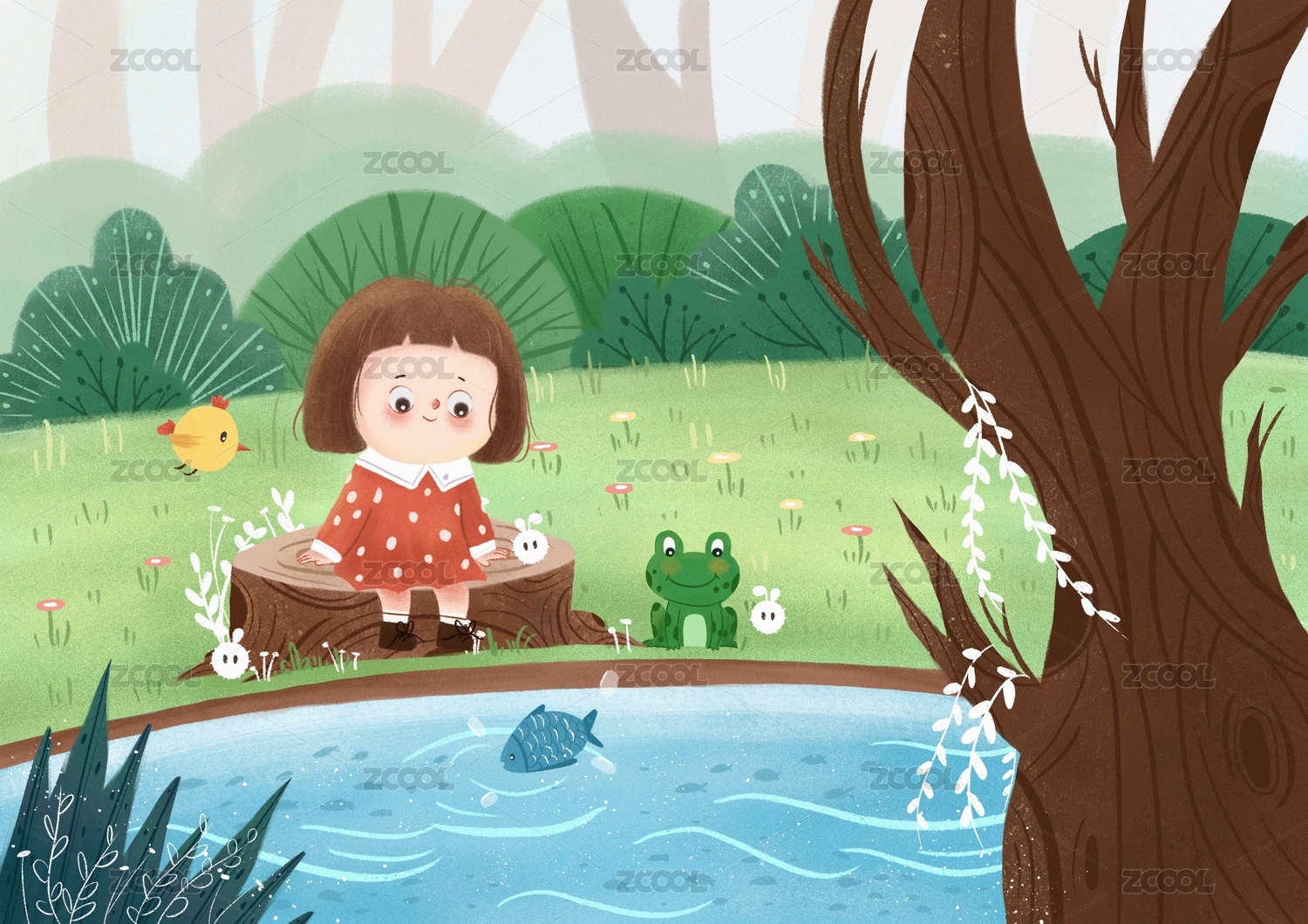 秋天秋游立秋秋分户外活动运动卡通漫画插画