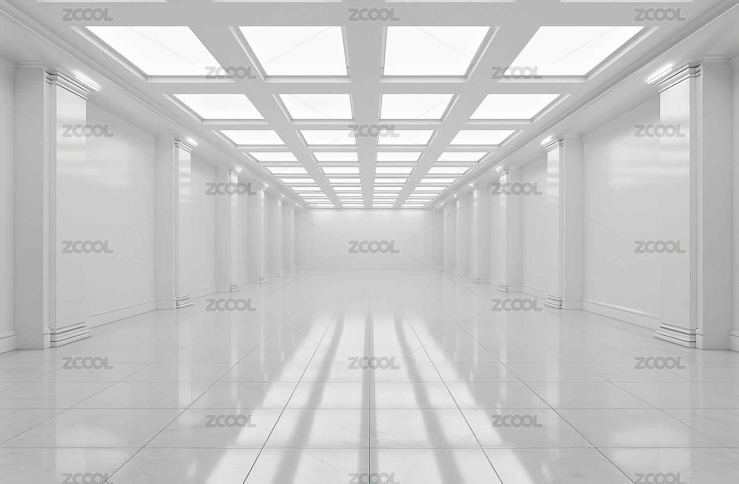 空旷白色走廊建筑设计图