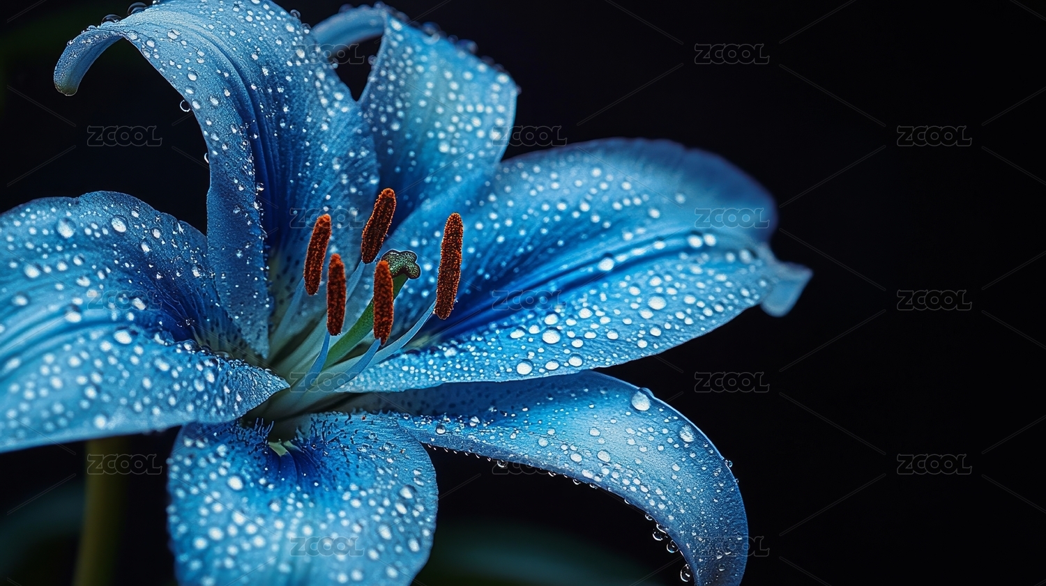 蓝色,百合,花朵,百合花,花卉,花瓣,水滴,雨露,花蕊,花心