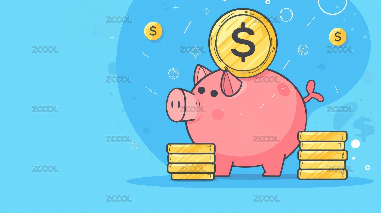 粉色,可爱,卡通,背景,叶子,储蓄罐,金币,金钱,财富,积蓄