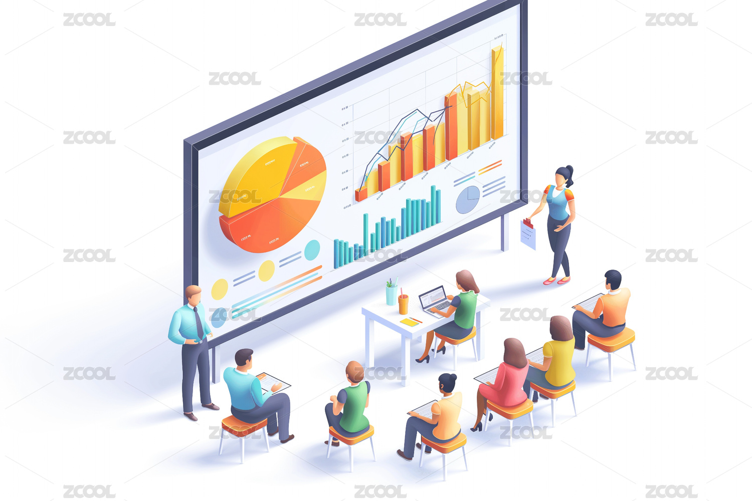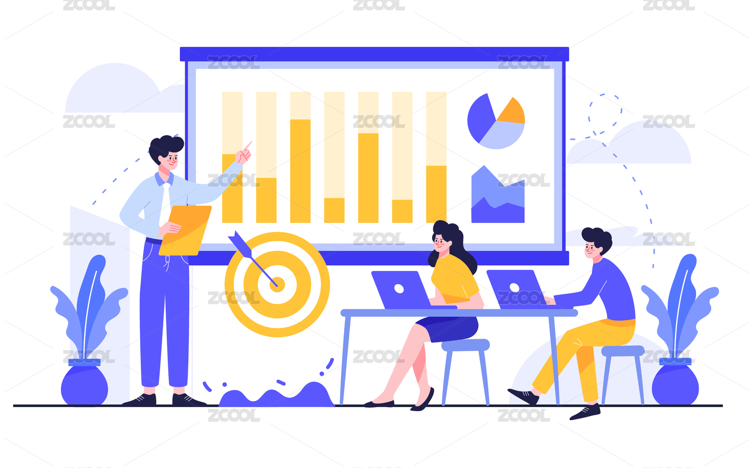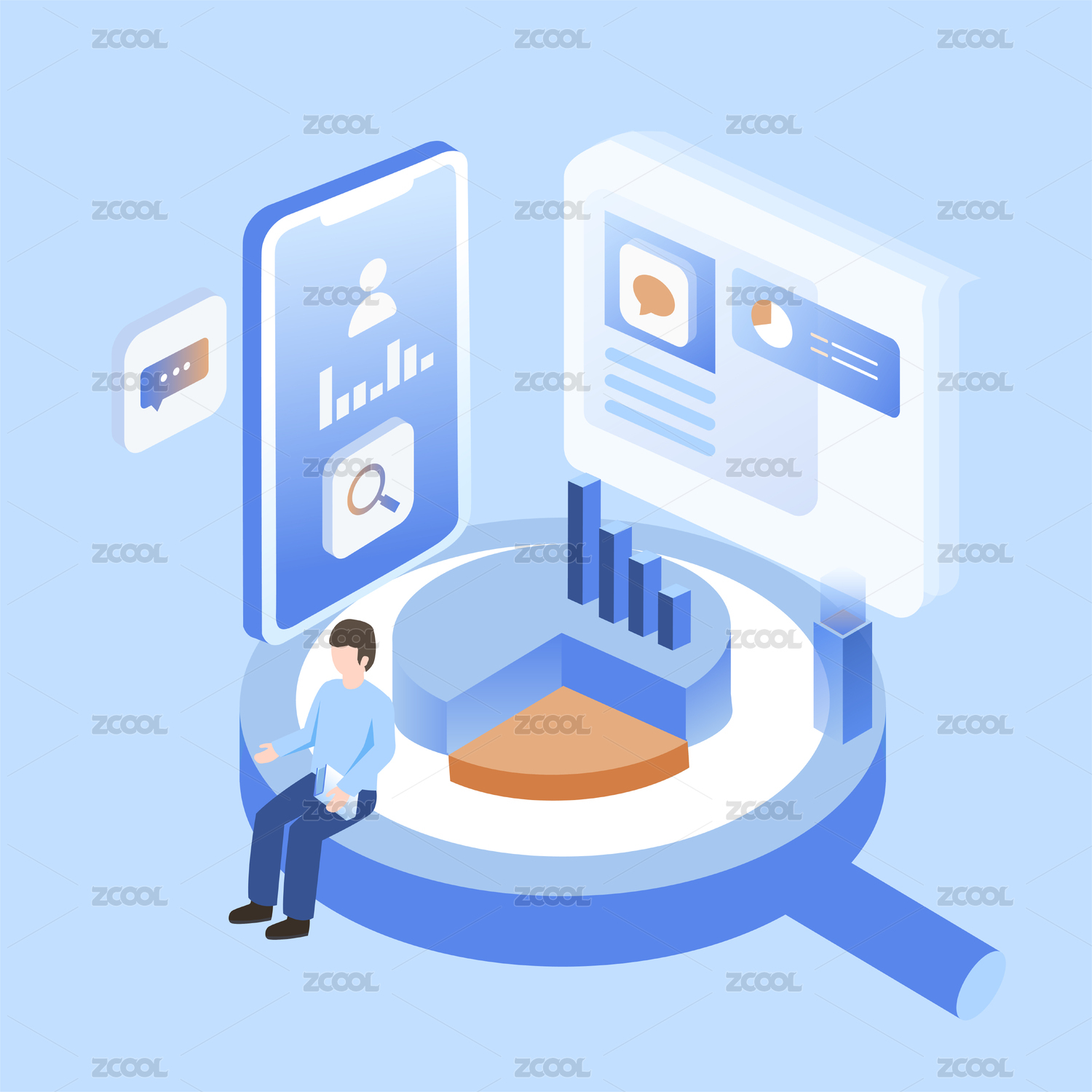 扁平风格数据分析工作场景