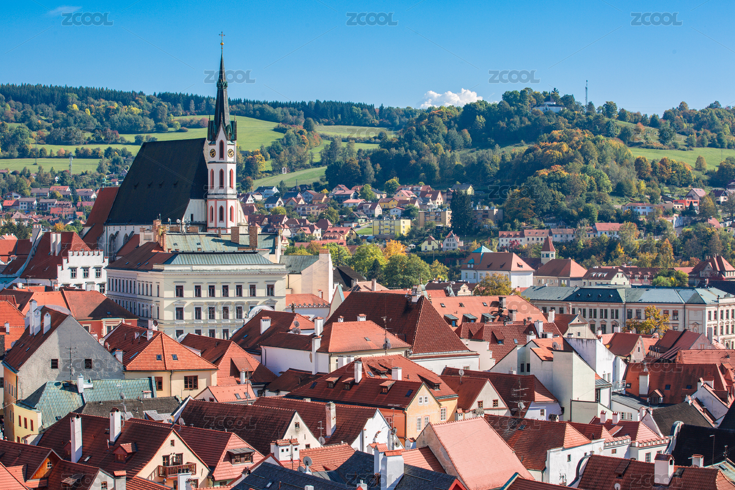 欧洲捷克克鲁姆洛夫小镇左侧面全景画面