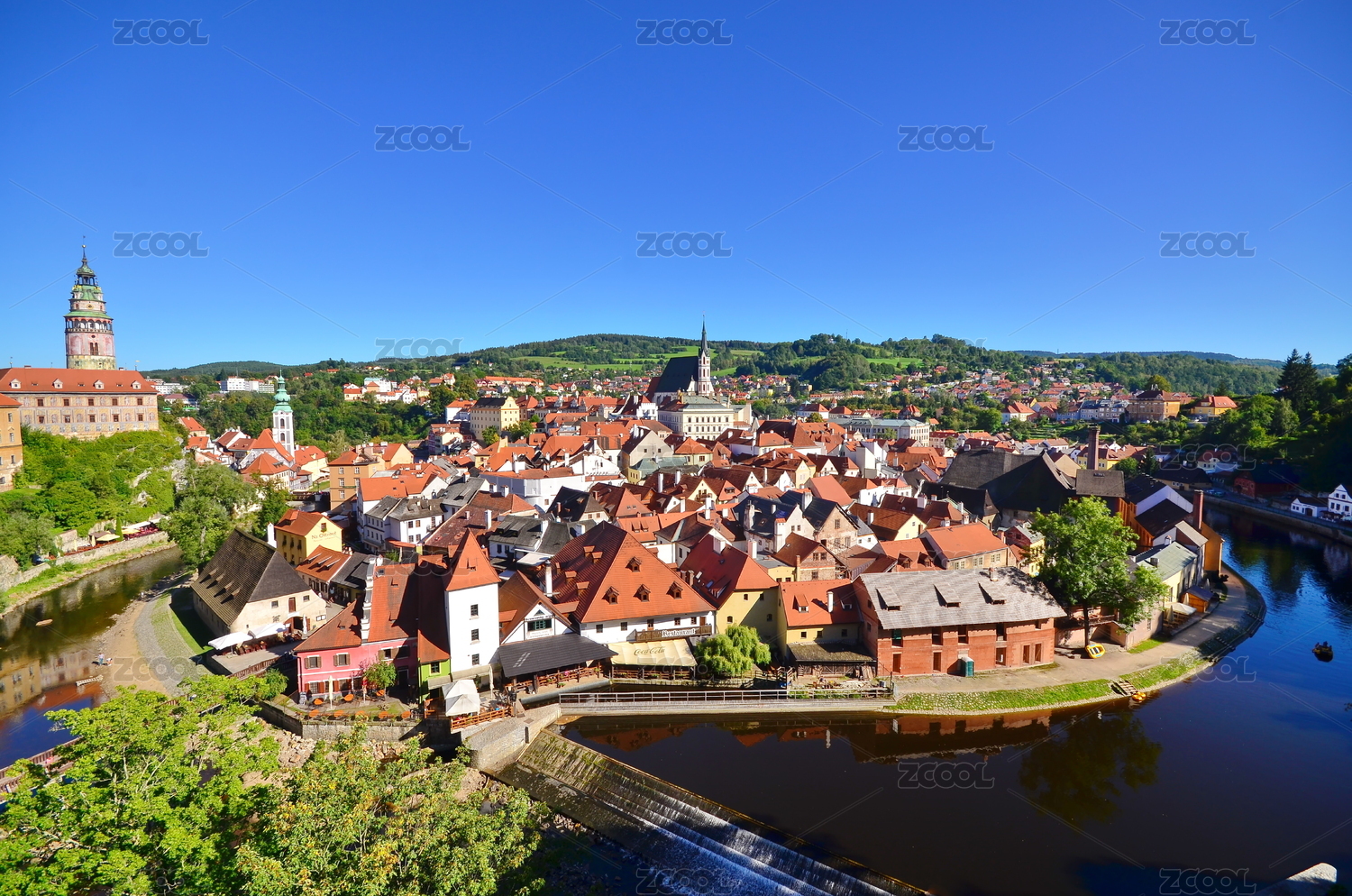 欧洲捷克克鲁姆洛夫小镇全景画面