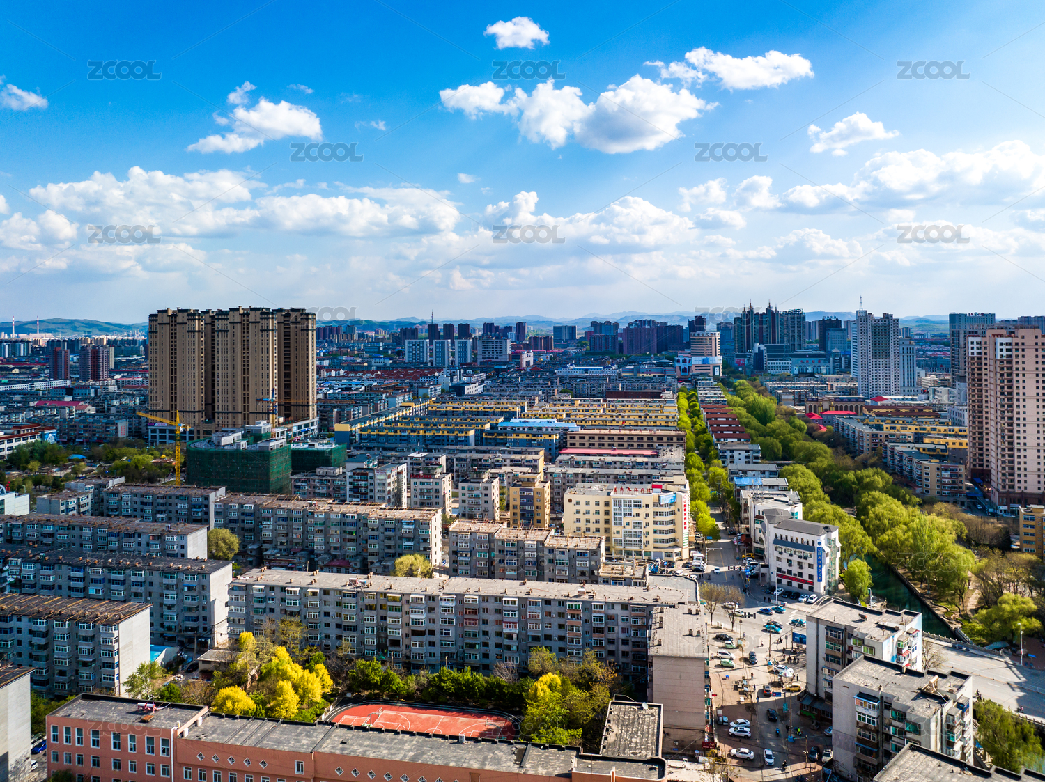 蓝天白云下的中国河北燕郊城市建筑群远景风光