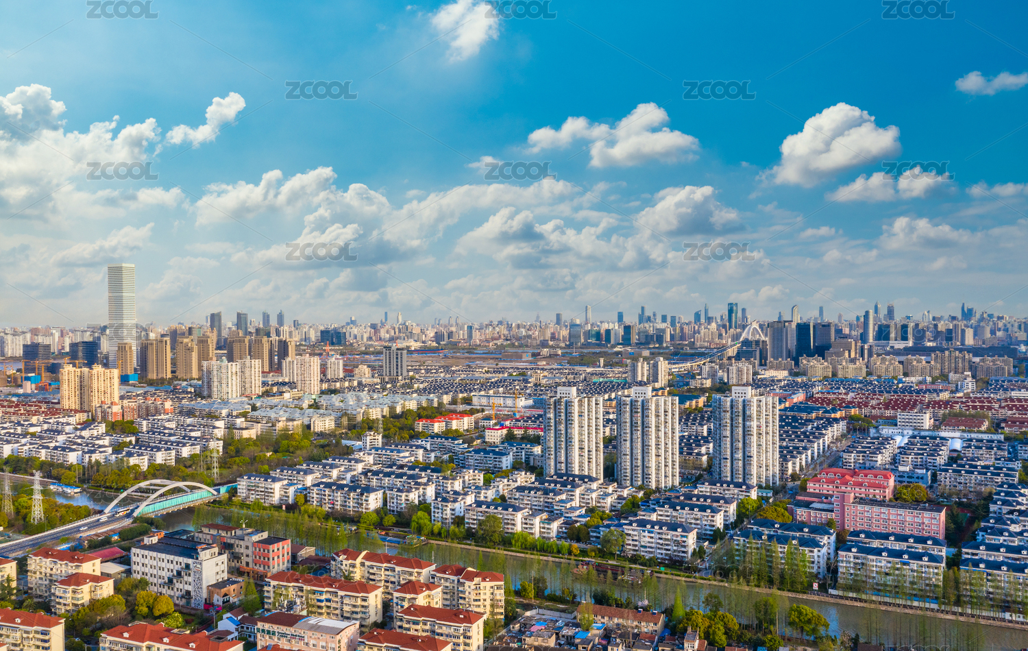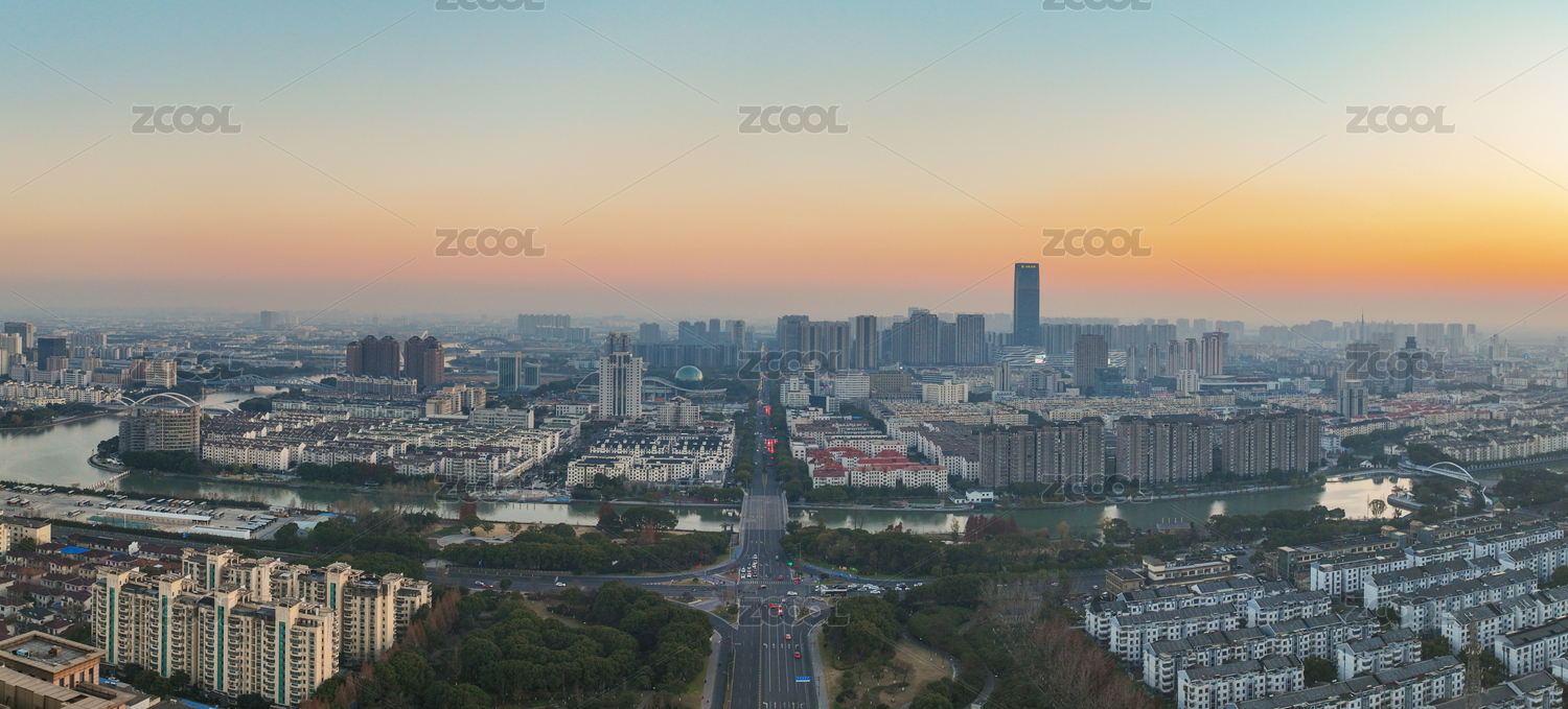 航拍江苏张家港城市建筑景观
