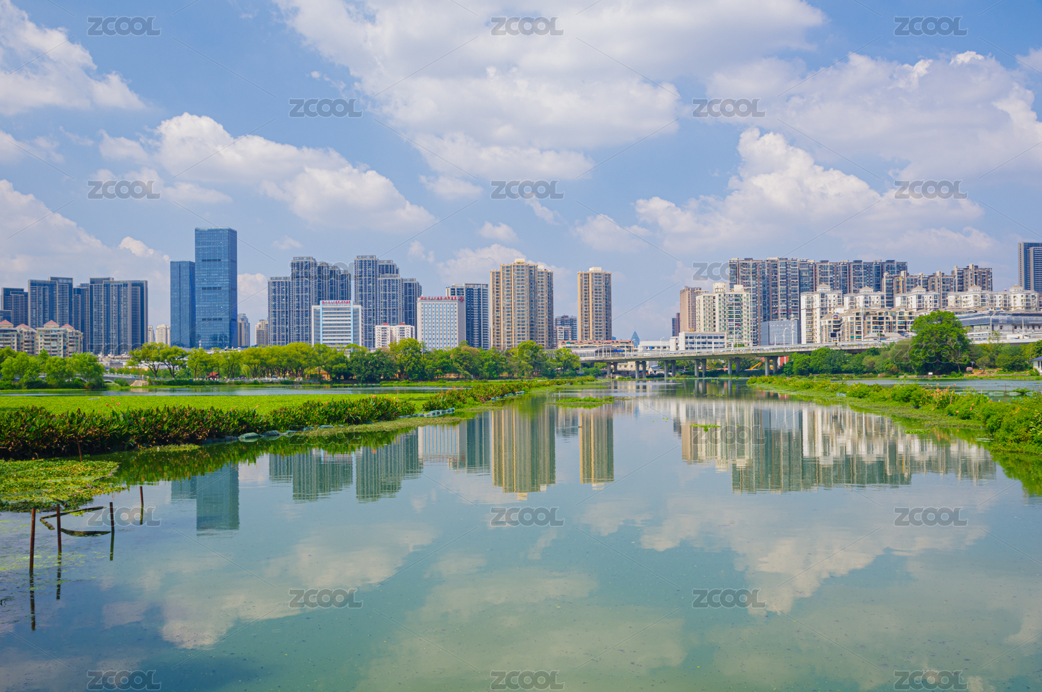 广州南沙蕉门公园蕉门河岸城市摩天大楼建筑