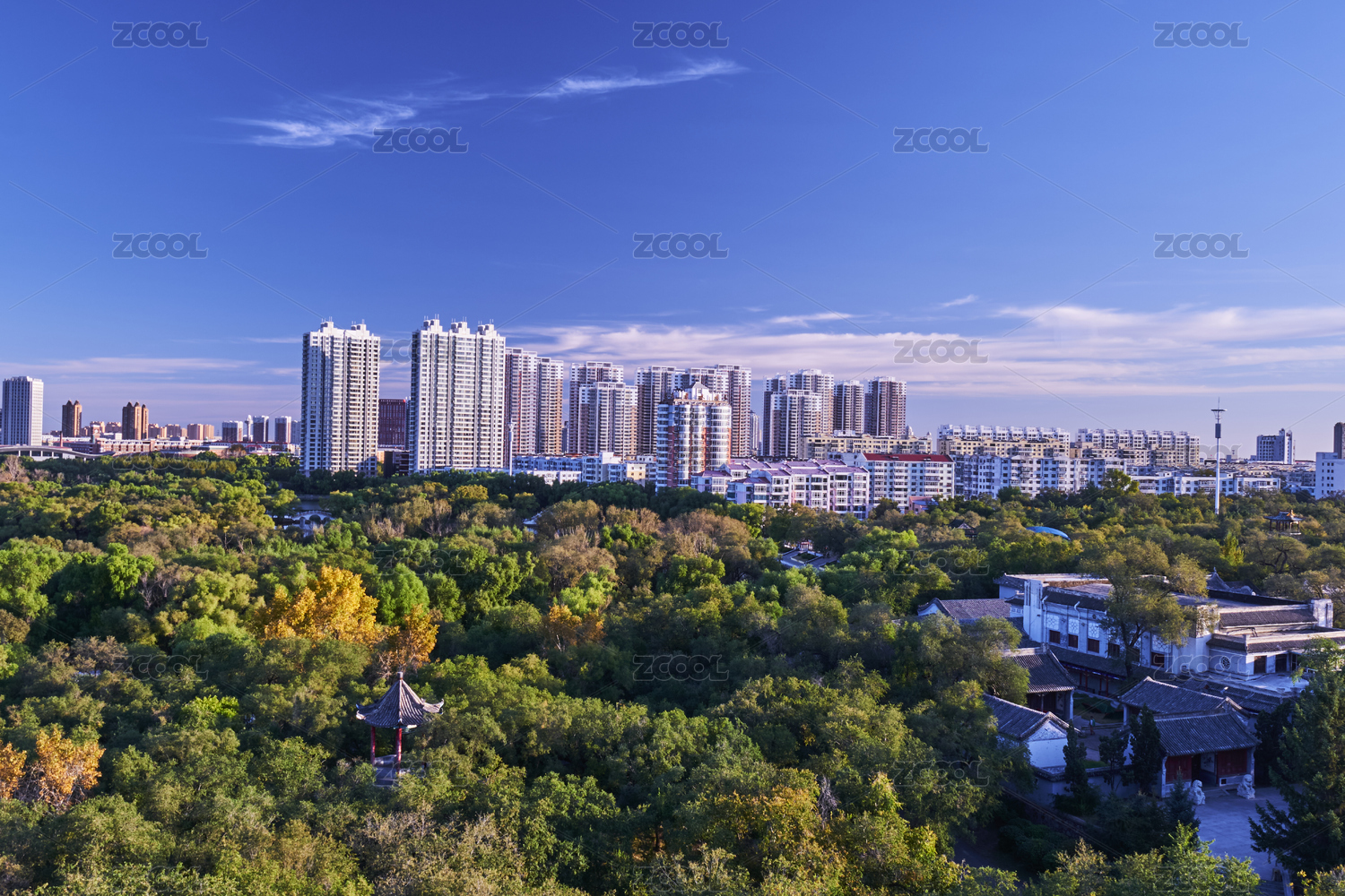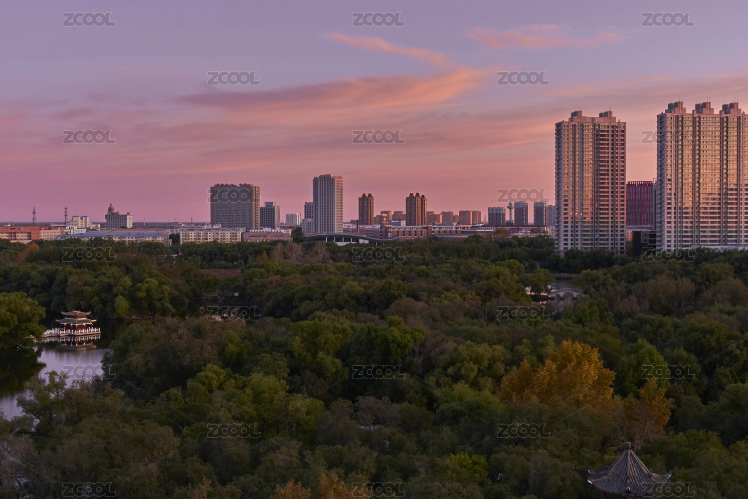 中国齐齐哈尔龙沙公园树林秋色全景风光